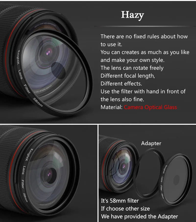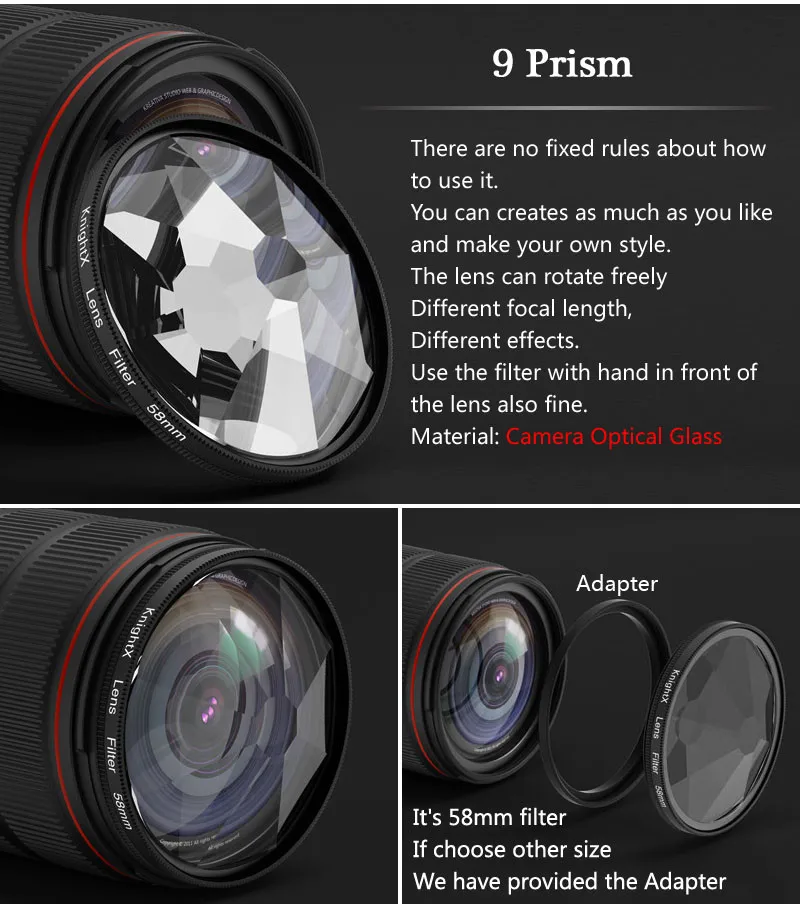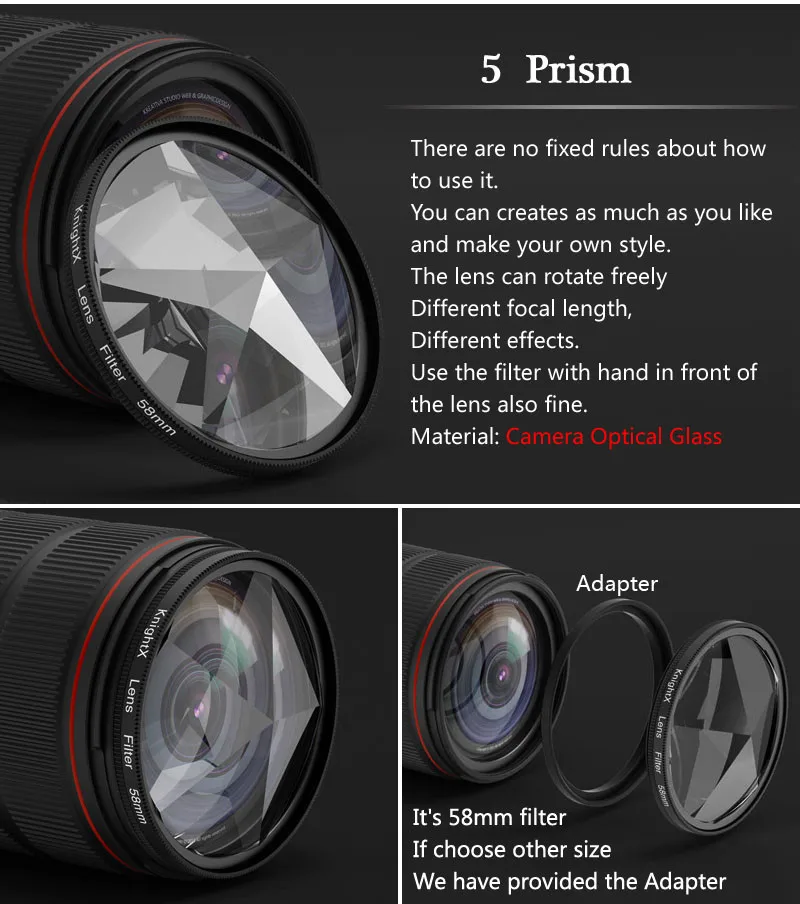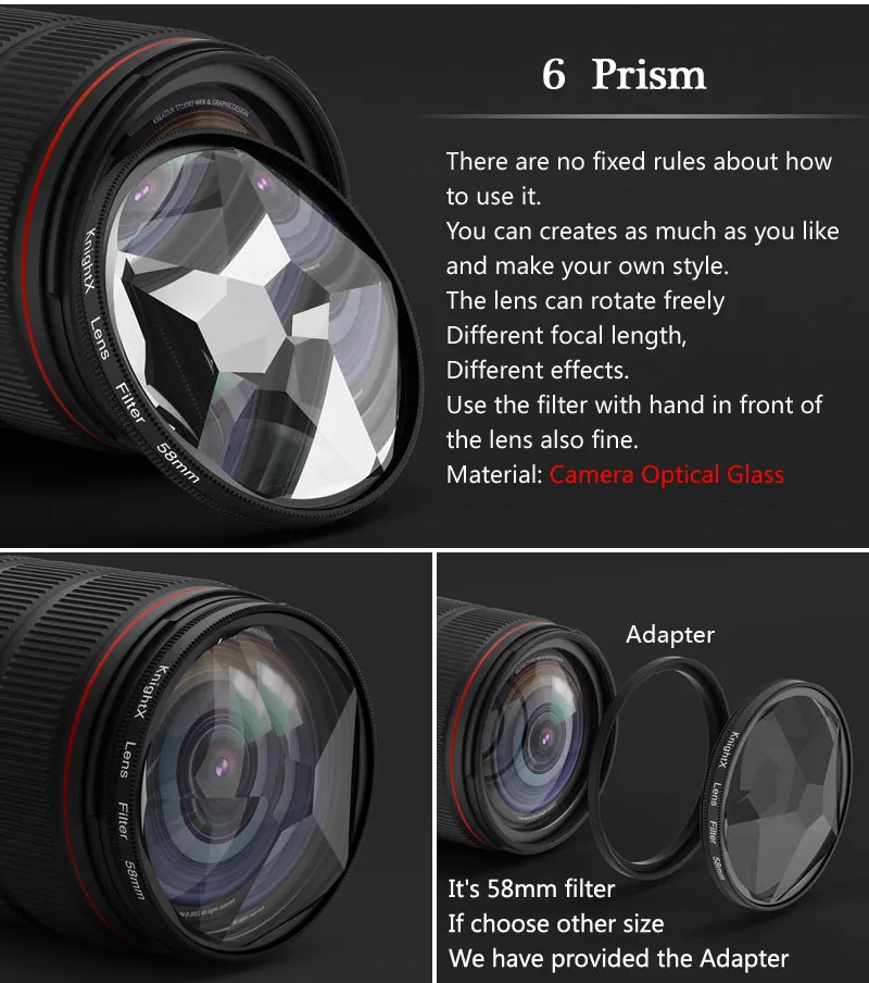 Фильтр призматический KnightX 6, 49 52 55 58 67 77 мм, объектив для фотосъемки, объектив для фотосъемки nikon CPL UV с изменяемым номером a6300