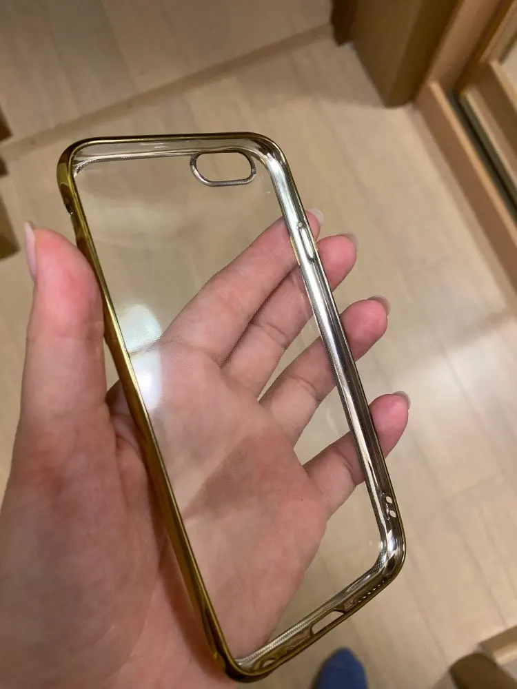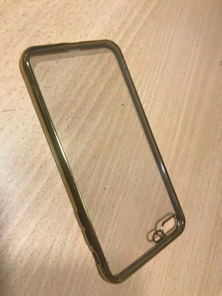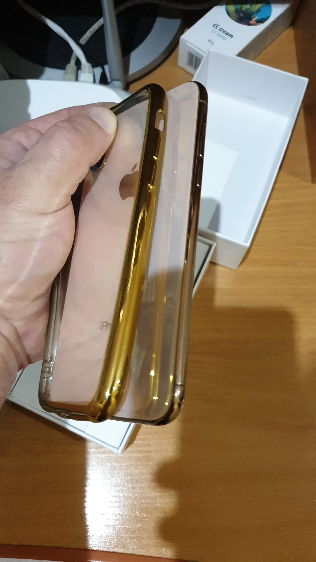 На картинке у продавца чехол выглядет так, словно у него задняя панель сделана золотистой с эмблемой - именно такой и искал и именно поэтому купил у этого продавца. На самом деле это обычный прозрачный чехол с золотистым бампером.