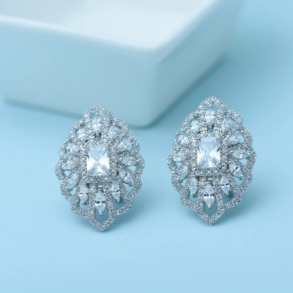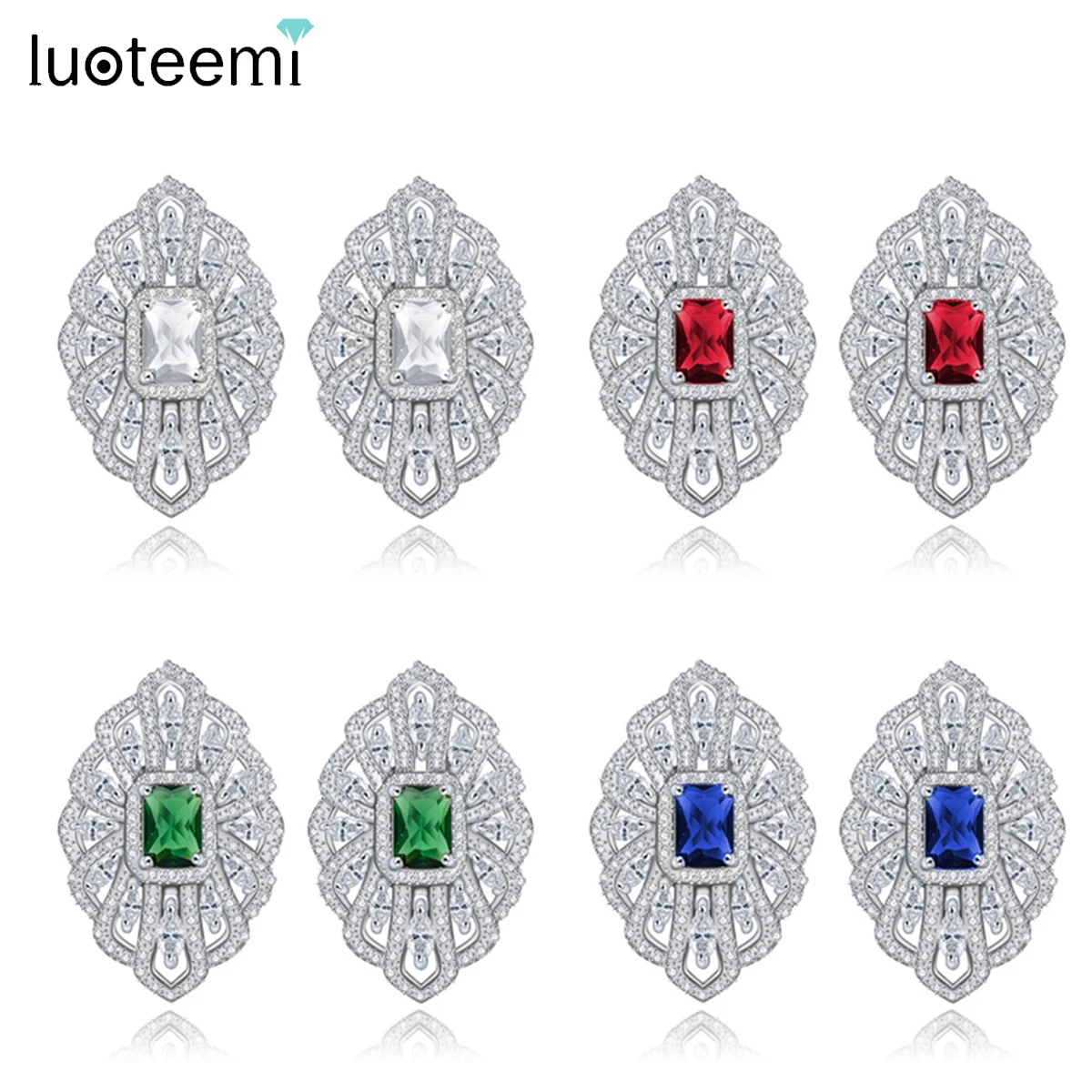 LUOTEEMI Brand New Arrival Austrian Crystal Statement Geometry Flower Ear Clips Women Trendy Earrings Chrisma Birthday Love Gift