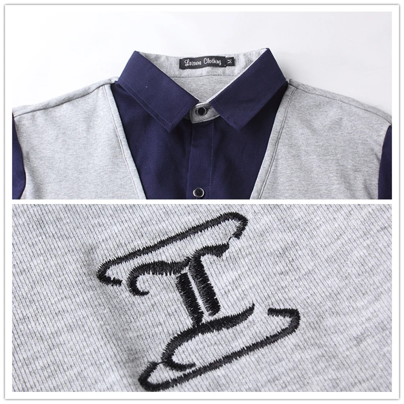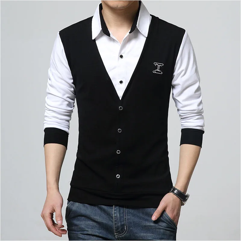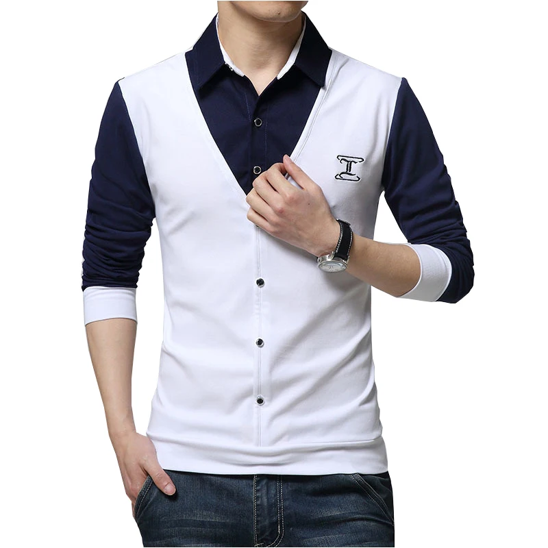 2020 Новая Осенняя модная дизайнерская мужская футболка с заплатками, футболка с фальш-вставкой и длинным рукавом с отложным воротником, хлопковая футболка для мужчин 5XL Тип товара: топы