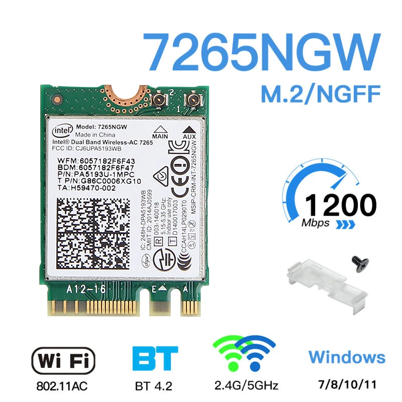 Двухдиапазонный беспроводной сетевой адаптер, 1200M WiFi 7265NGW для Intel 7265 Wi-Fi 802.11ac 2x2 для Bluetooth 4,0 NGFF M.2