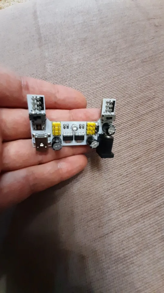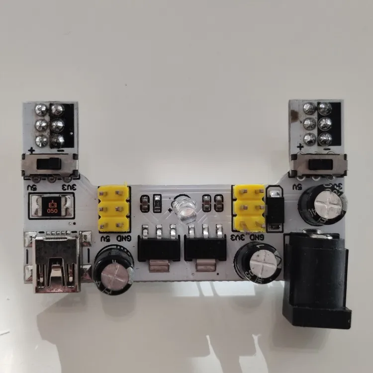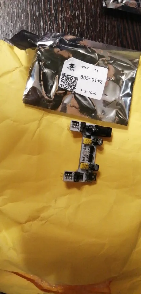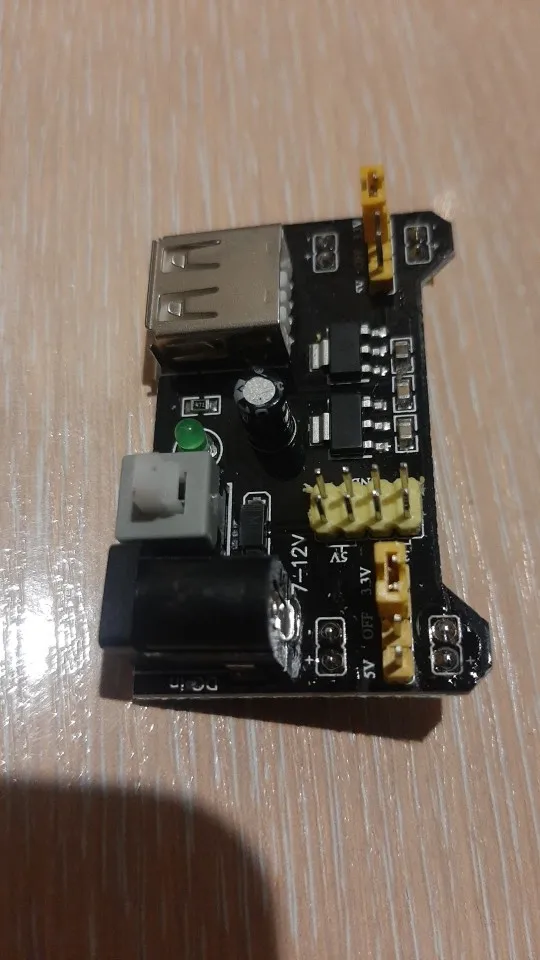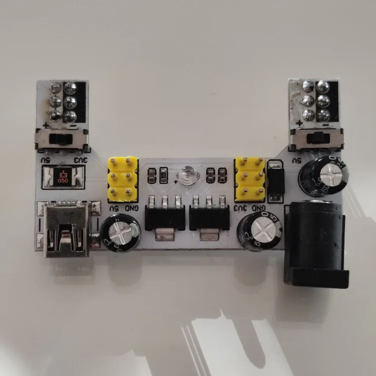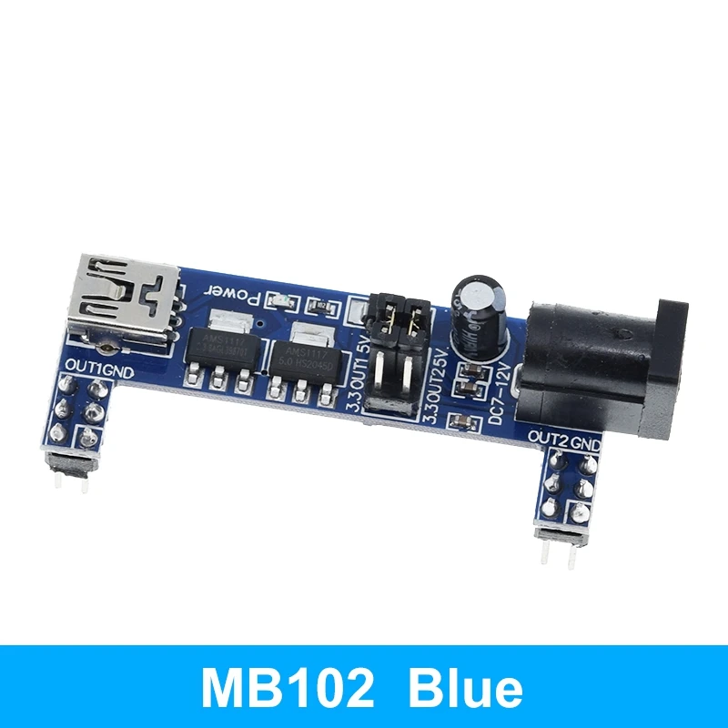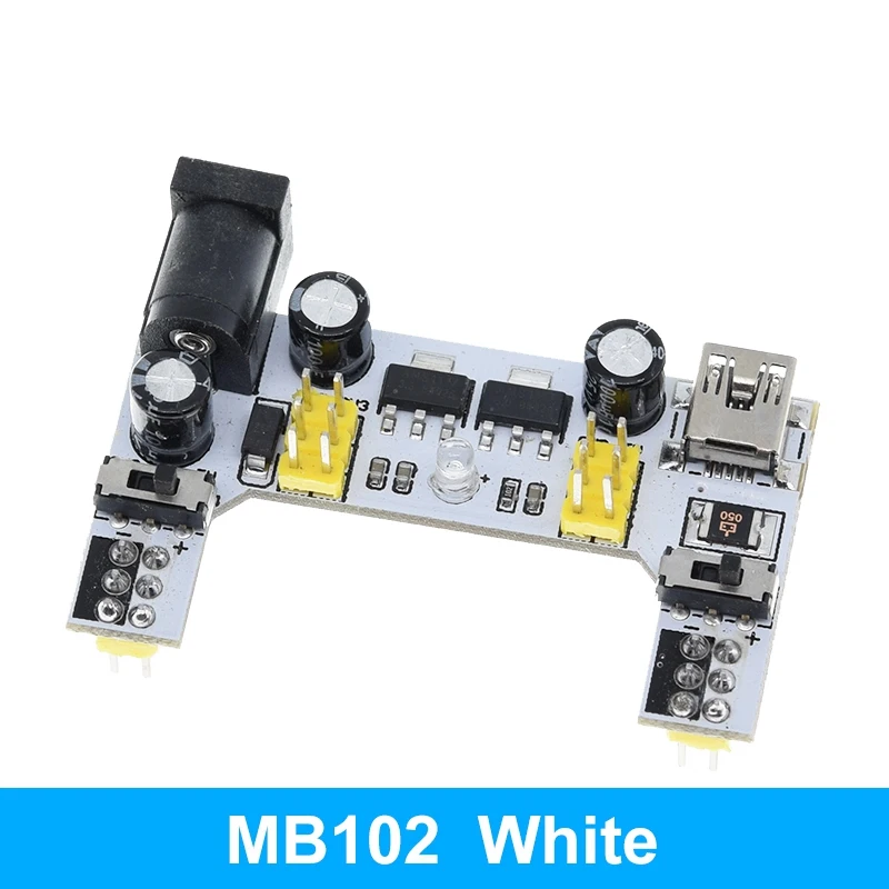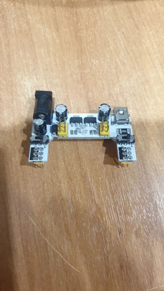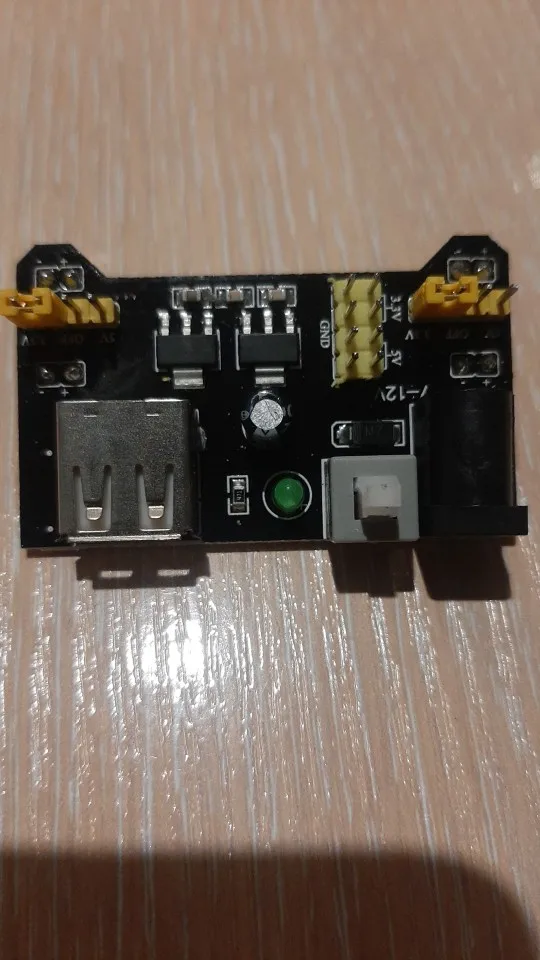 Хороший продукт, отлично работает! Быстрая доставка! Я купил белый макетный модуль питания MB102. Источник питания может питаться от мини USB (без микро-usb) и головки постоянного тока.