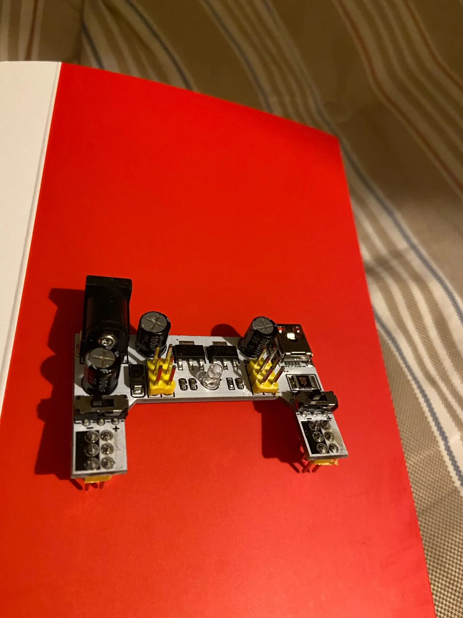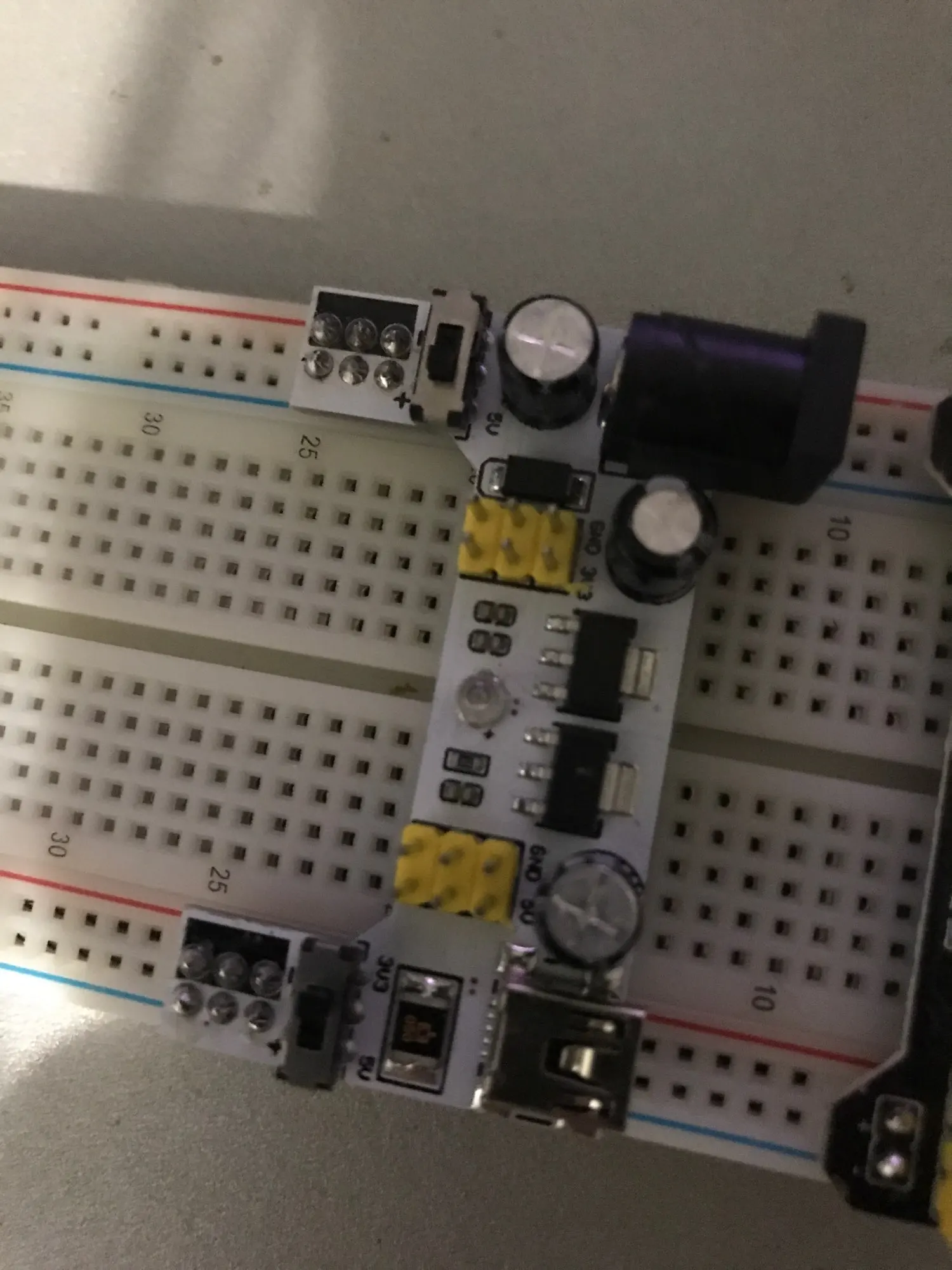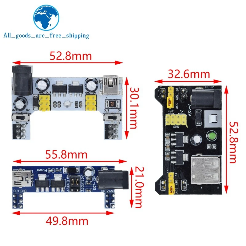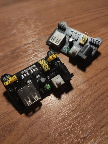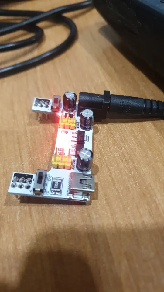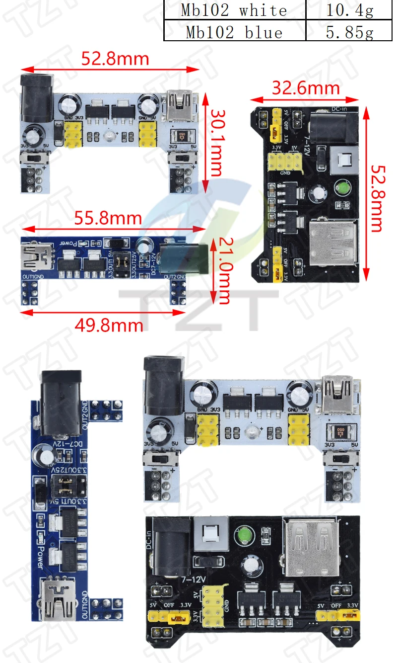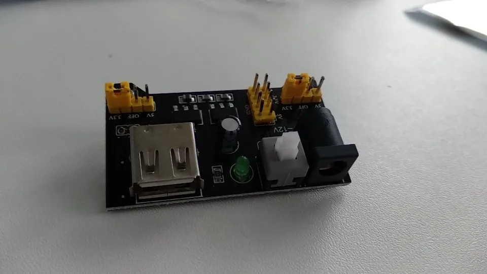 Хороший продукт, отлично работает! Быстрая доставка! Я купил белый макетный модуль питания MB102. Источник питания может питаться от мини USB (без микро-usb) и головки постоянного тока.
