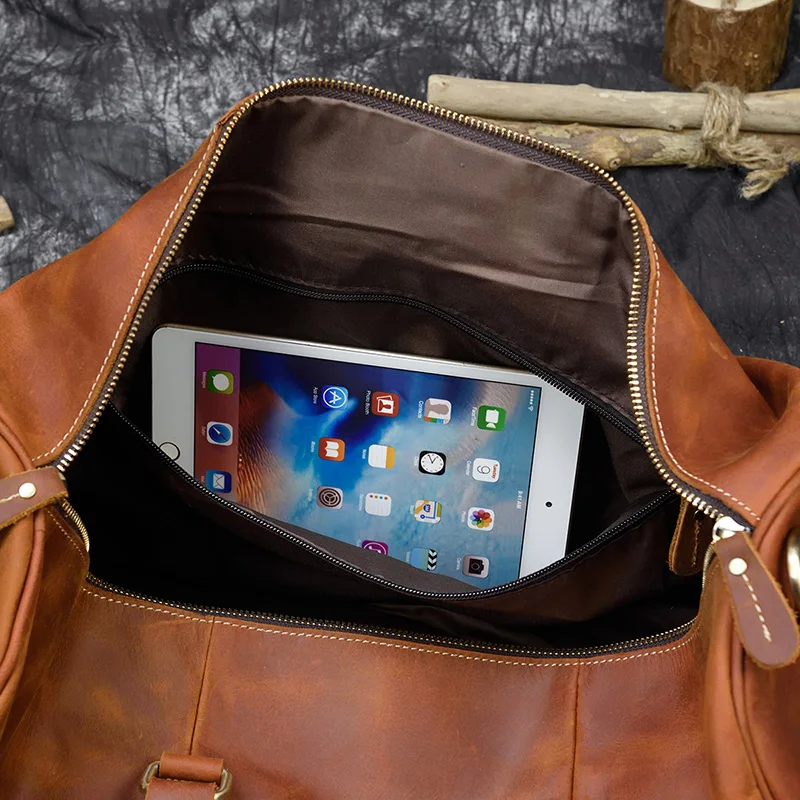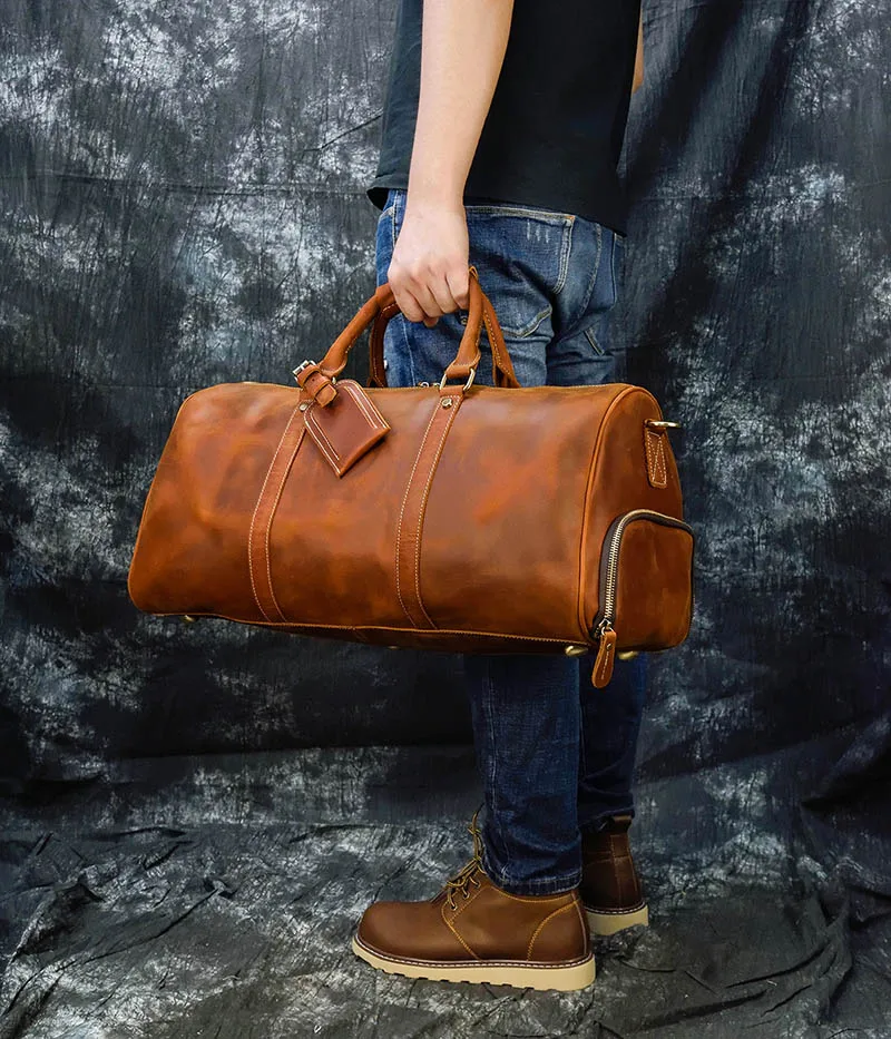 Мужская Толстая дорожная сумка Crazy Horse из коровьей кожи, 20 дюймов, дорожная сумка, винтажная Сумка-тоут для багажа из натуральной кожи