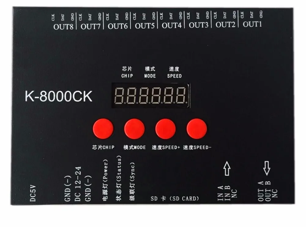 K-8000CK (обновленная версия T-8000), светодиодный пиксельный контроллер SD-карты; В автономном режиме; Выход сигнала SPI: 1024 пикселей * 8 портов = 8192 пикселей icon star icon star icon star icon star icon star