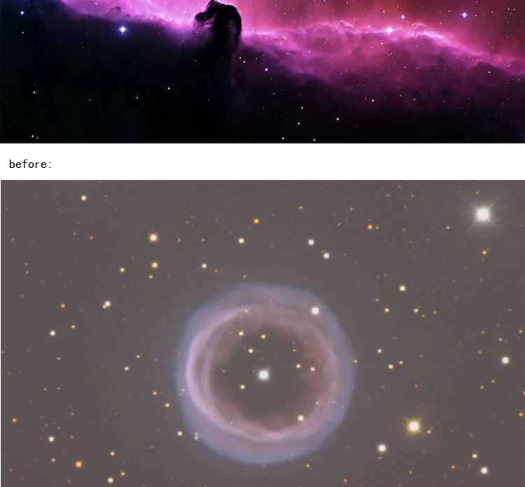 Высококонтрастный фильтр, улучшенная контрастная туманность и звезды, воспроизводят насыщенные детали туманности.