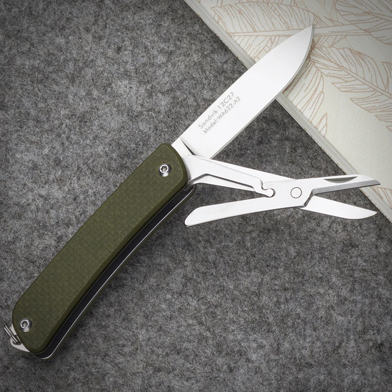 Карманный складной нож для повседневного использования Mack Walker WA622, лезвие 12C27, рукоятка G10, ножницы, брелок