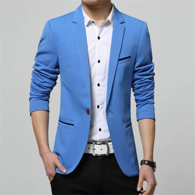 Мужской Корейский приталенный Модный хлопковый Блейзер, костюм, куртка, черный, синий, бежевый цвет, от M до 6XL, мужские блейзеры, мужское пальто, свадебное платье