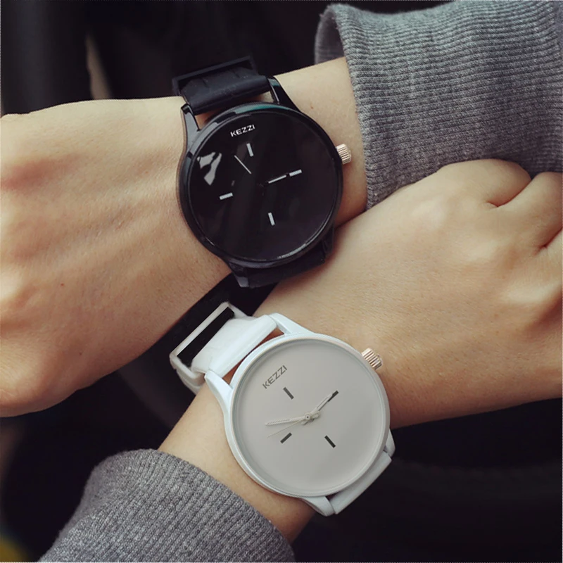 Часы наручные Kezzi женские кварцевые, брендовые классические спортивные в стиле унисекс, с силиконовым ремешком, с большим циферблатом, черные белые