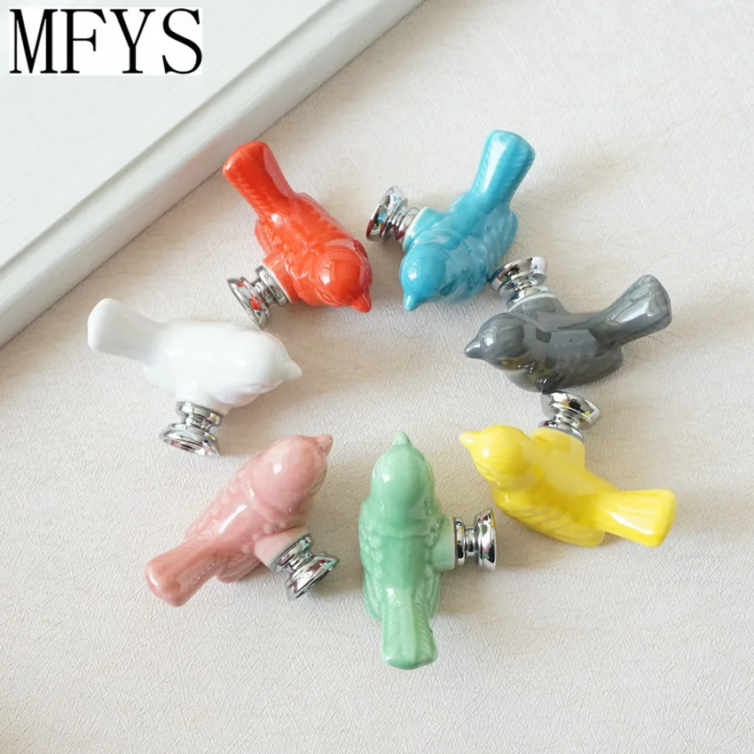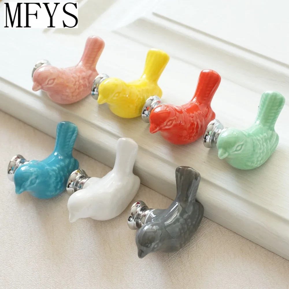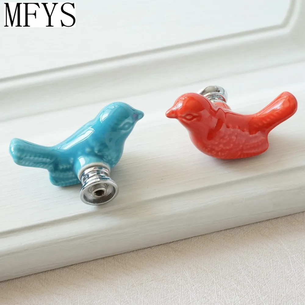 Симпатичные птички керамические ручки комод ручка ящика Тянет Ручки Шкаф Тянет ручка розовый зеленый детский Декор Ручка мебельная для Кабинета