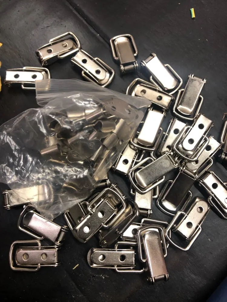 Хорошие застежки, надо брать 2 штуки. Крепить можно на проволоку. Подходят взамен сломанных на кейсе для оборудования