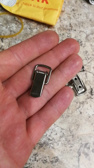 Я купил защелку для ящика с инструментами, который сломал пластиковую защелку и думал, что они будут очень маленькими, но они не подходят очень хорошо, и сверху у него есть Маленькая пружина, которая подтягивает и связывает две половинки коробки и очень сильна, мы увидим время, которое держится от открытия и закрытия с защелкой и проходит время