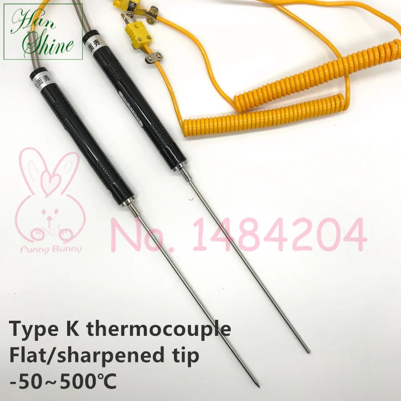 Поверхностная термопара типа K-50 500C 3 мм * l 170 мм, ручной датчик температуры с плоским наконечником, заостренным игольчатым наконечником
