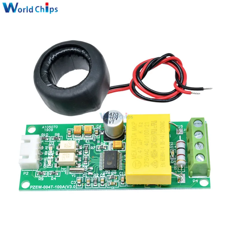 PZEM-004T-100A: диапазон измерения 100 А (внешний трансформатор)