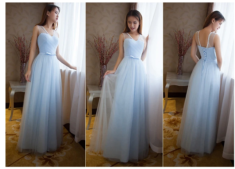 Женское длинное платье подружки невесты, светло-голубое фатиновое светильник подружки невесты в стиле принцессы, модель B3438