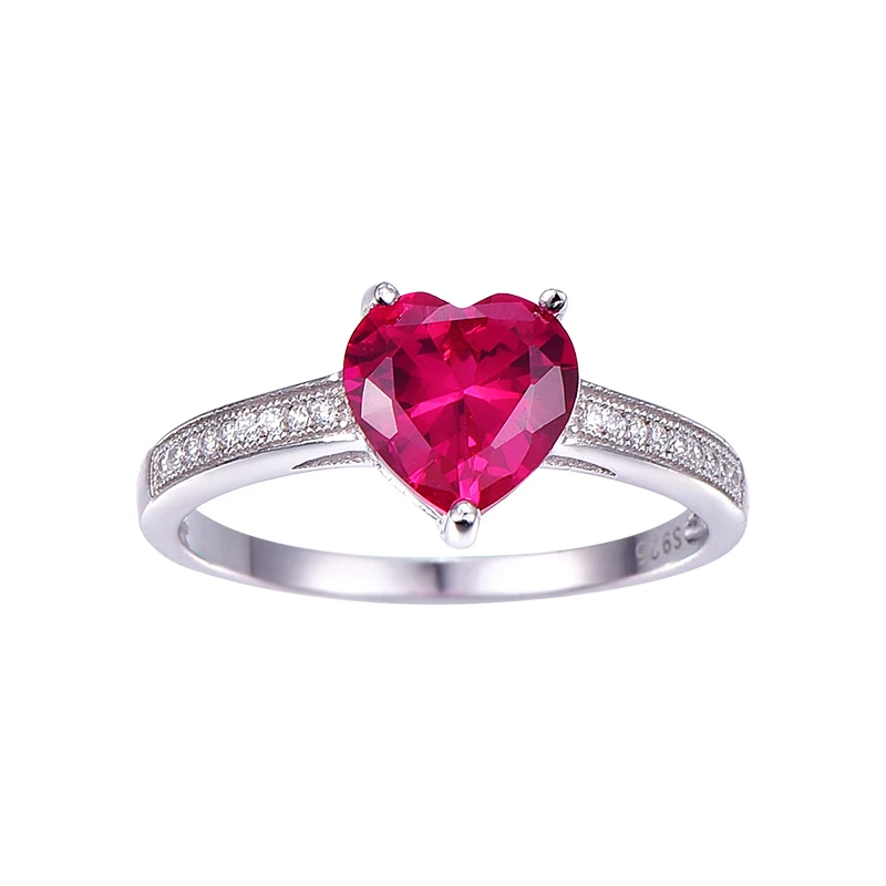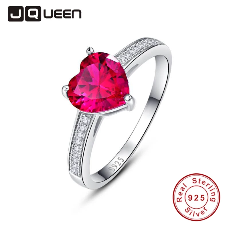 JQUEEN 3ct обручальное кольцо с красным искусственным Рубином в форме сердца, однотонное блестящее серебряное ювелирное изделие для влюбленных