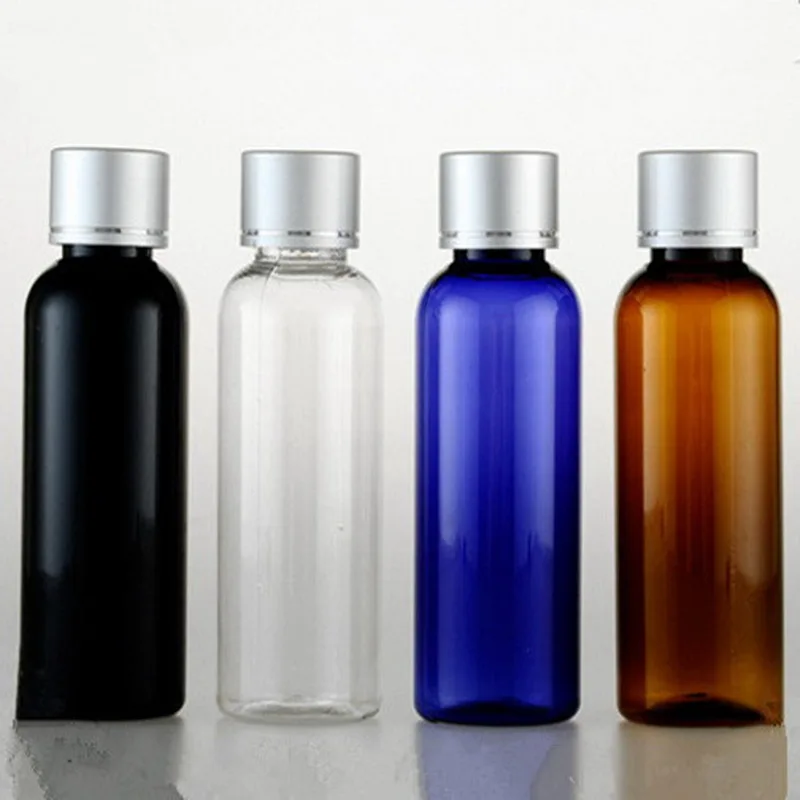 Бутылка из ПЭТ с круглым плечом, 10 шт.лот, 50 мл, с алюминиевой анодированной винтовой крышкой, пластиковая бутылка для эмульсии, пустая многоразовая бутылка для жидкости