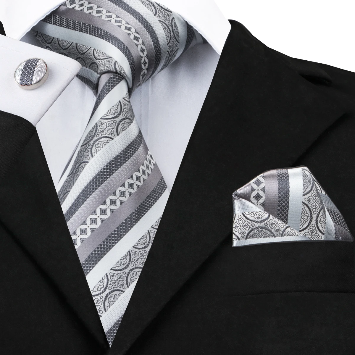 Hi-Tie новый классический серый галстук для мужчин из шелковой ткани жаккардовый тканый галстук Hanky запонки набор для мужчин дизайнерские модные шелковые галстуки SN-1466