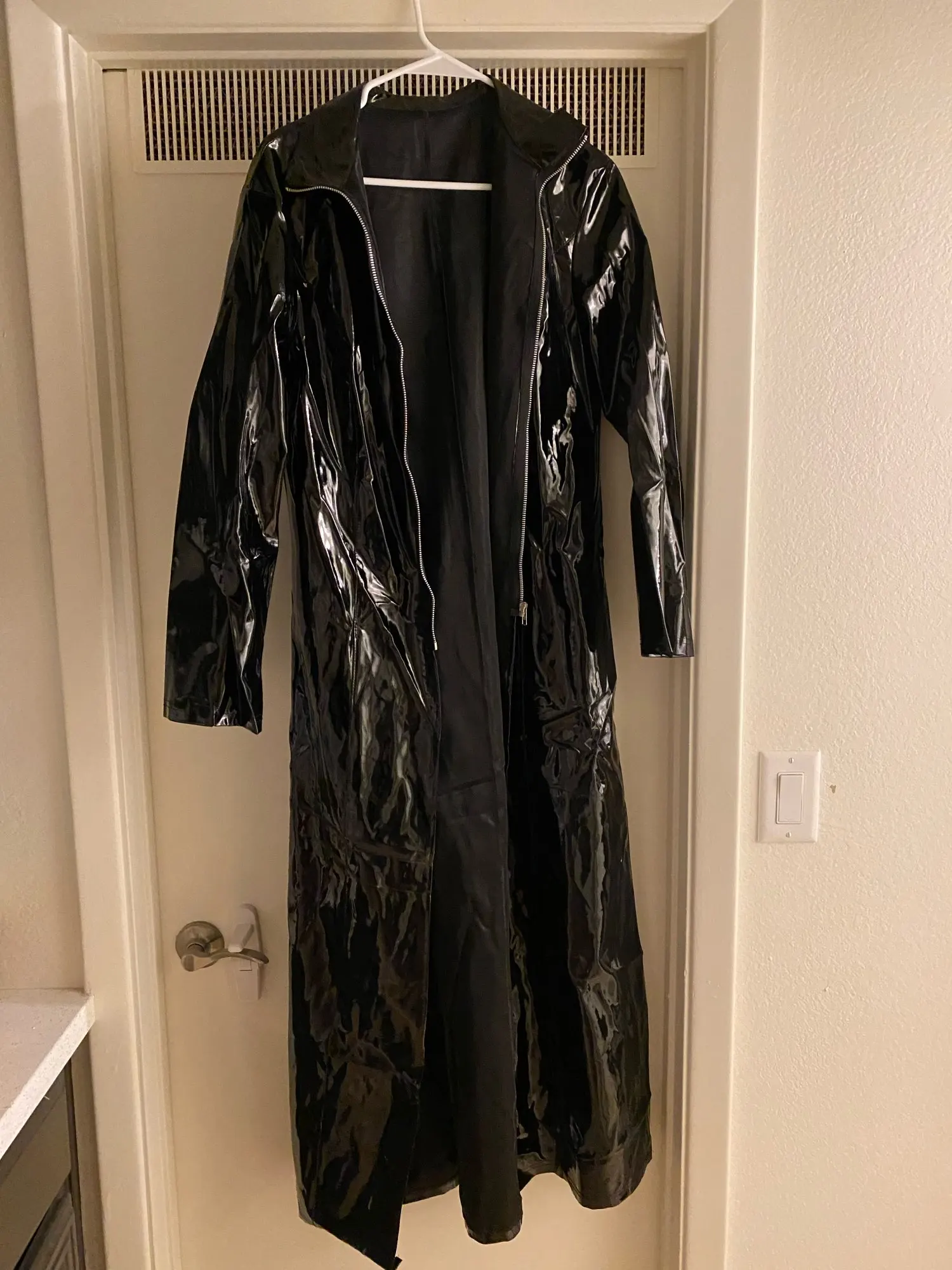 Женское и мужское пальто из лакированной кожи, Черное длинное пальт...