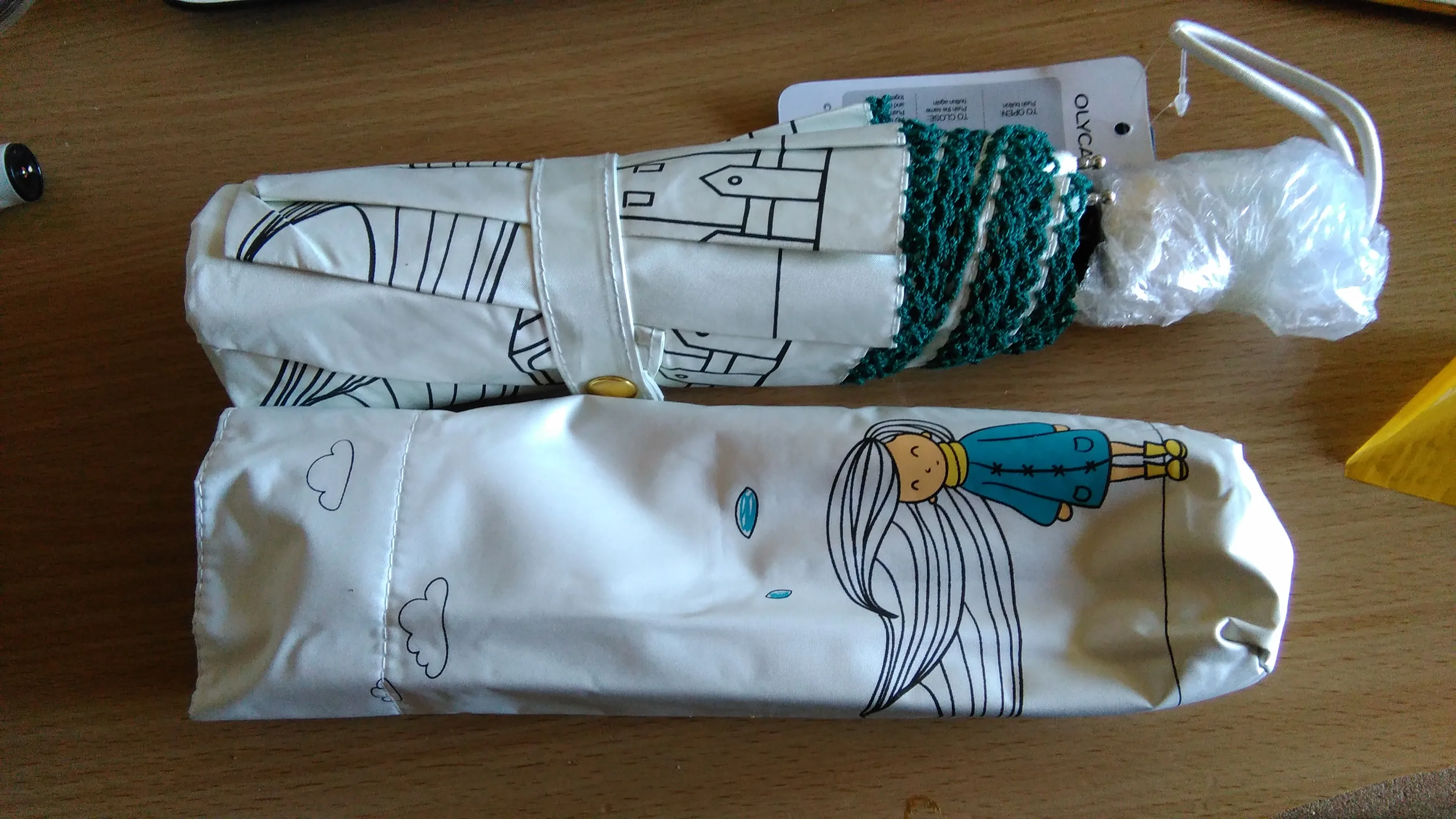 Заказ пришел за 27 дней с момента оплаты заказа до Алтайского края. Зонтик недешевый: 1500 руб. Материал двухслойный. Рисунок симпатичный. На дожде пока не проверяли.