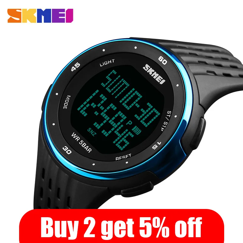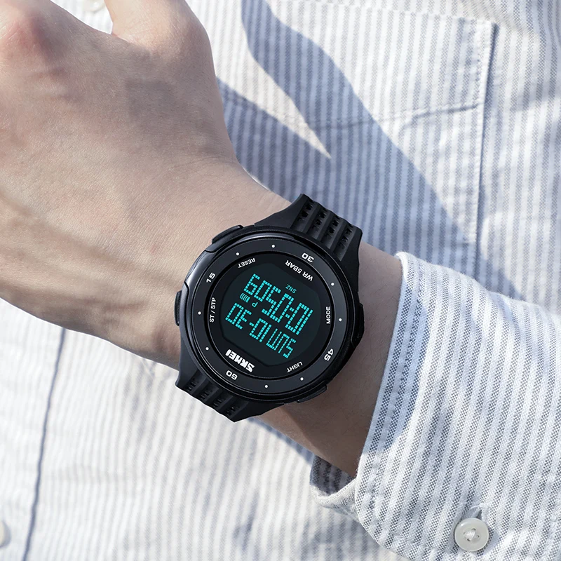 Часы наручные SKMEI мужские с большим циферблатом, спортивные цифровые со светодиодный дисплеем, хронографом, календарем и будильником, с подсветкой, 1219