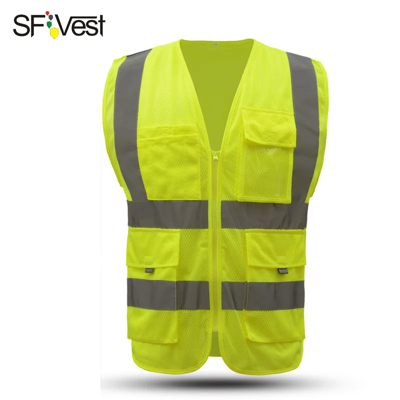 Жилет безопасности SFvest, желтый светоотражающий жилет с карманом, рабочая одежда