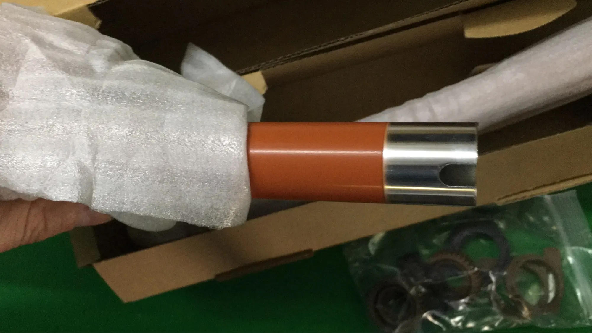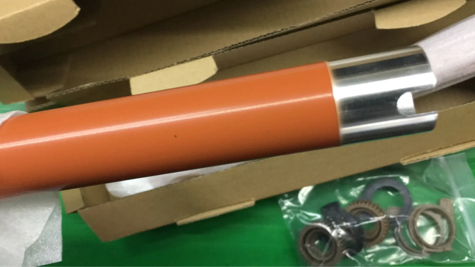 За сега впечатленията ми са добри, Upper Fuser roller, bushing и gear изглеждат добре, макар и с различни от оригинала цветове. Единствено на UFR имаше лек дефект в единия край- малък боклук в тефлоновото покритие(вижда се на снимките). Скоро ще ги монтирам на някоя повредена изпичаща секция и ще допълня отзива.