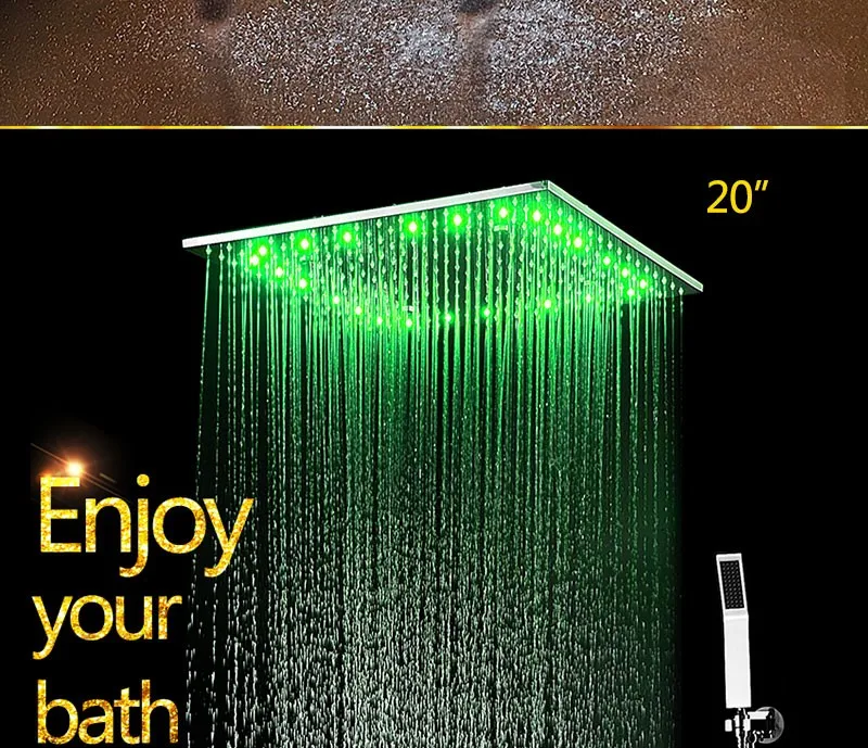 Светодиодный термостатический набор для душа с зеркальной отделкой SUS304, панель с 20 дюймовым встроенным потолком, светодиодный душ, дождевой туман, спа hm