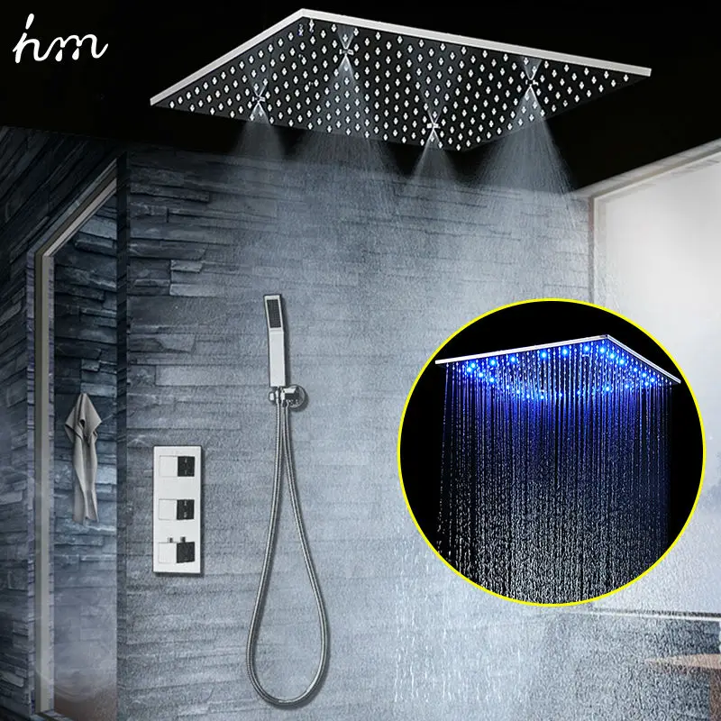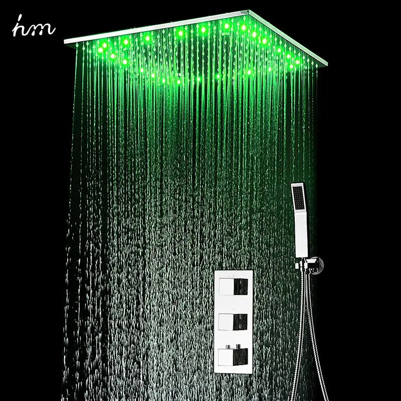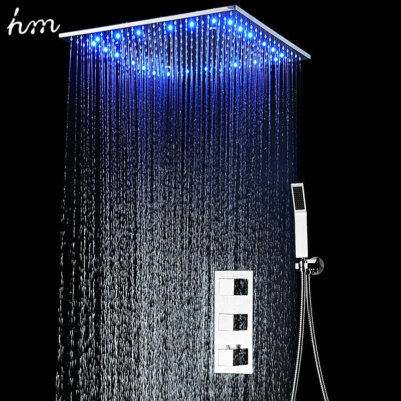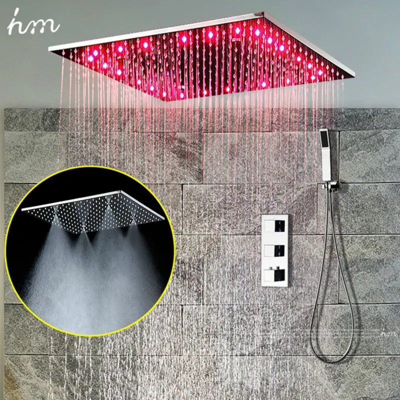 Скрытый термостатический набор для душа SUS304, зеркальная готовая панель со встроенным потолком 20 дюймов, Светодиодная насадка для душа с дождевым туманом, спа hm