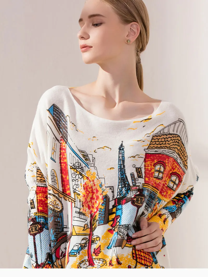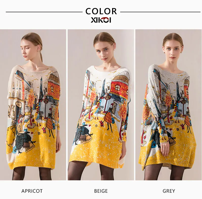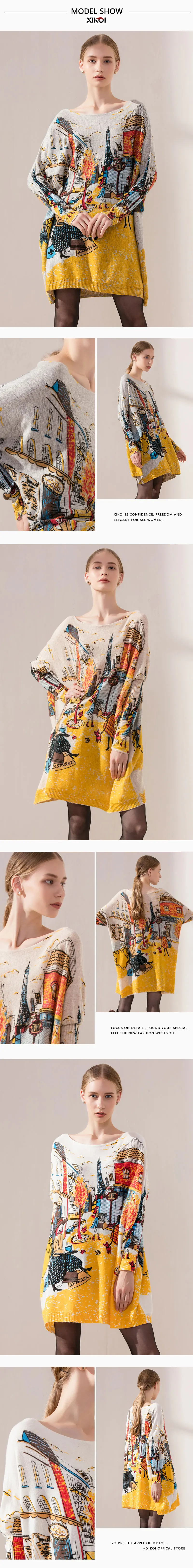 XIKOI негабаритный свитер женский пуловер Модный Милый принт с круглым вырезом Платье мягкое теплое с длинным рукавом "летучая мышь" удобная свободная одежда