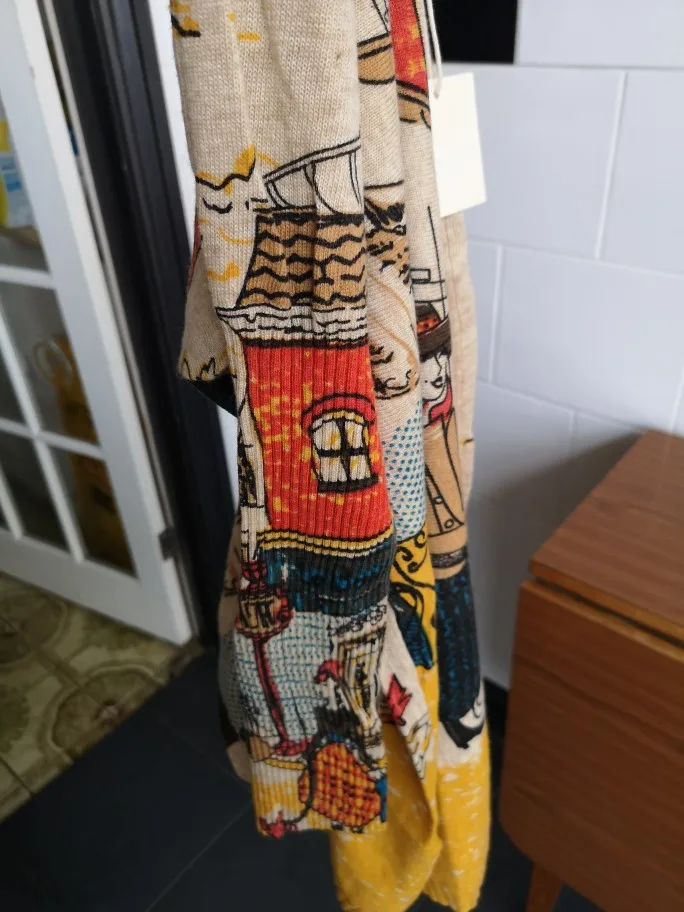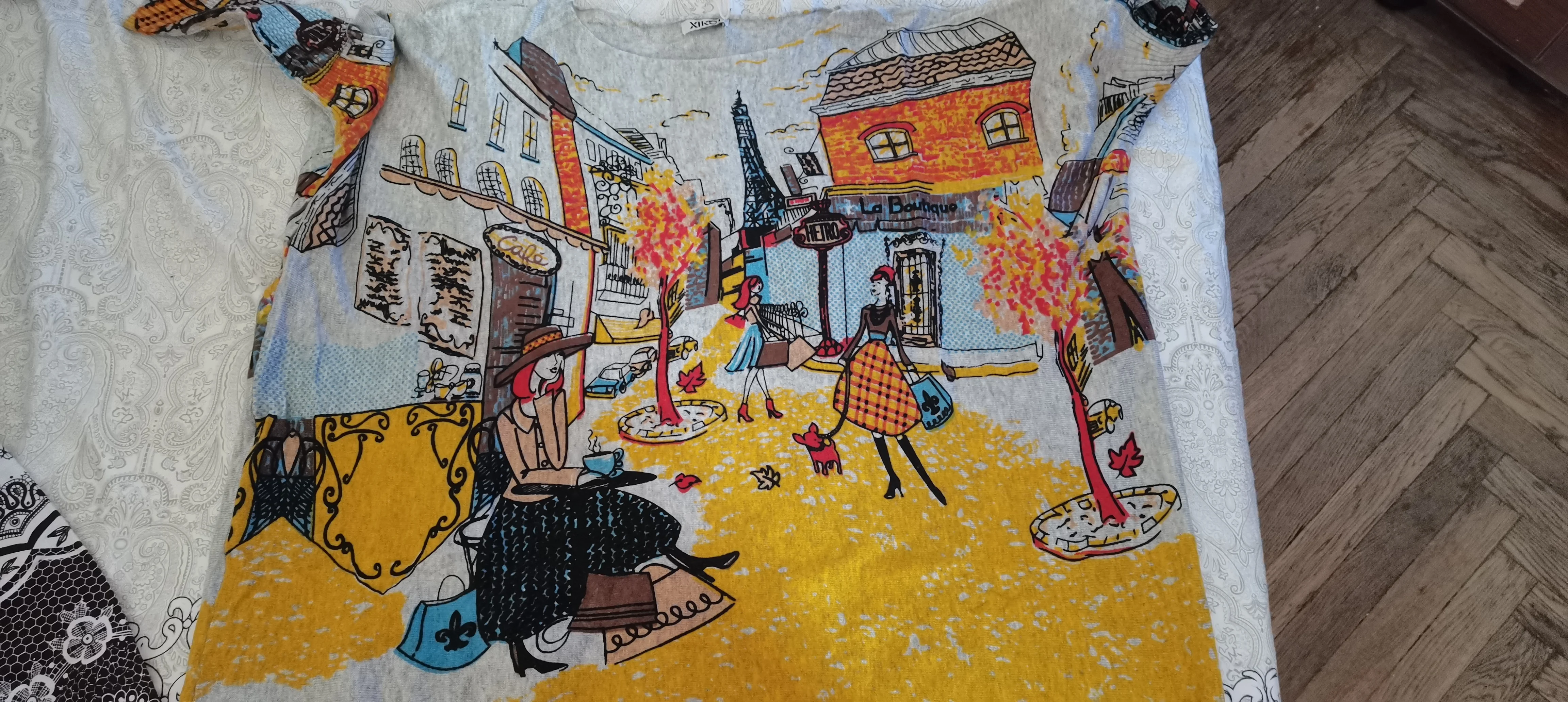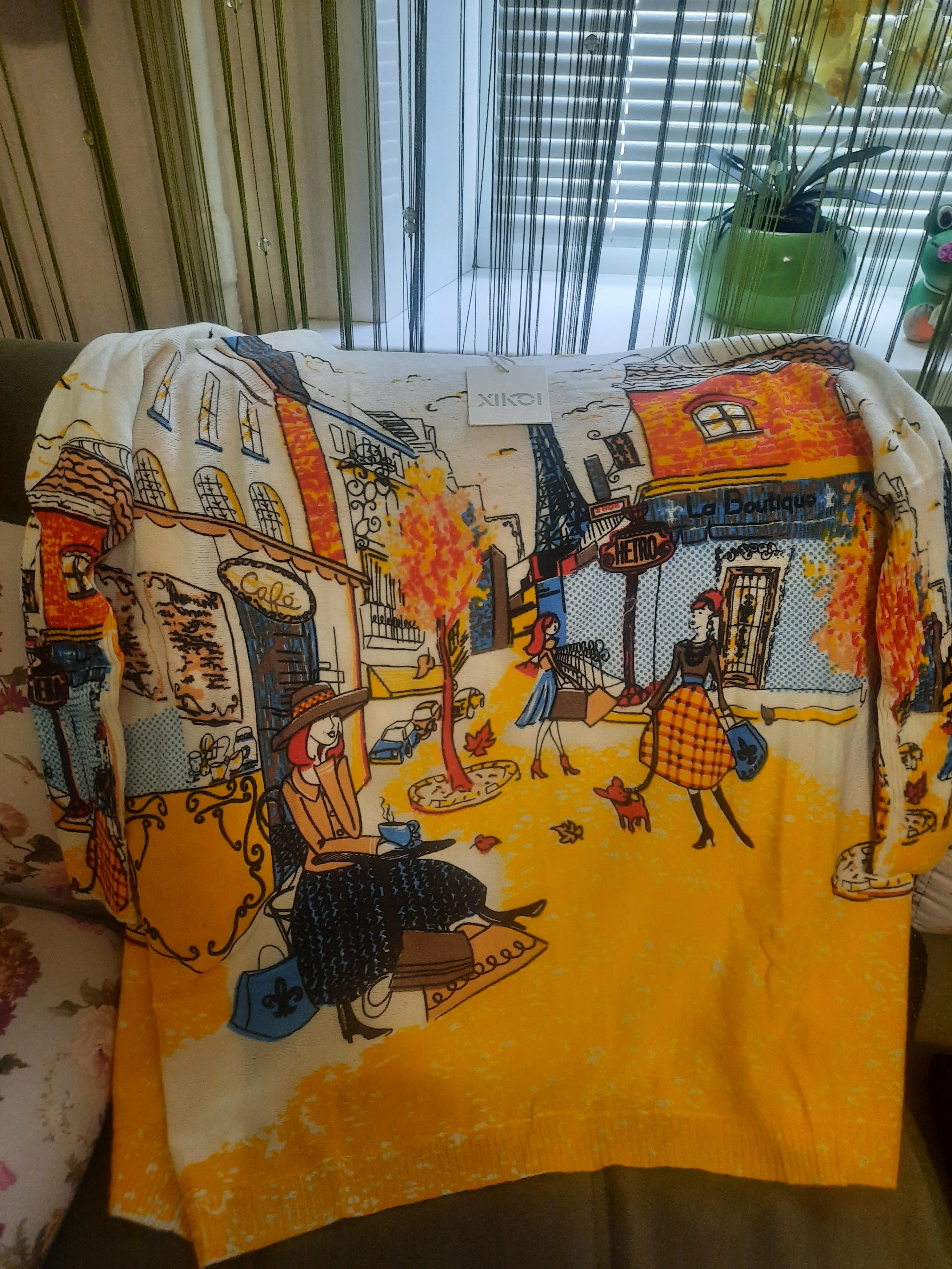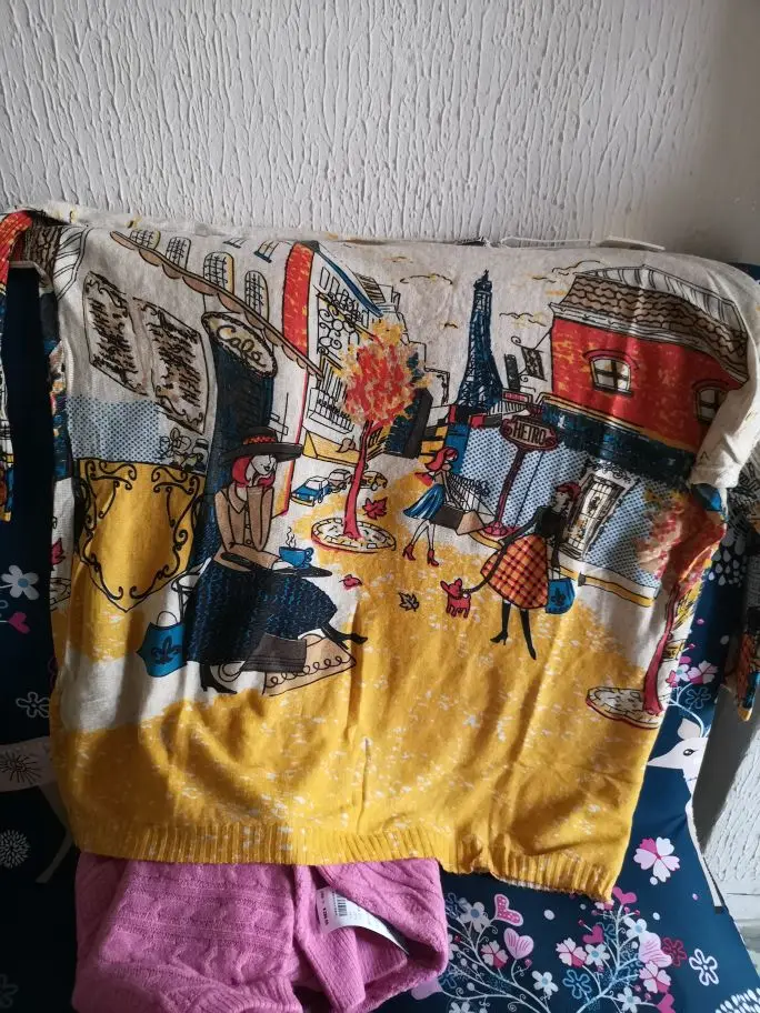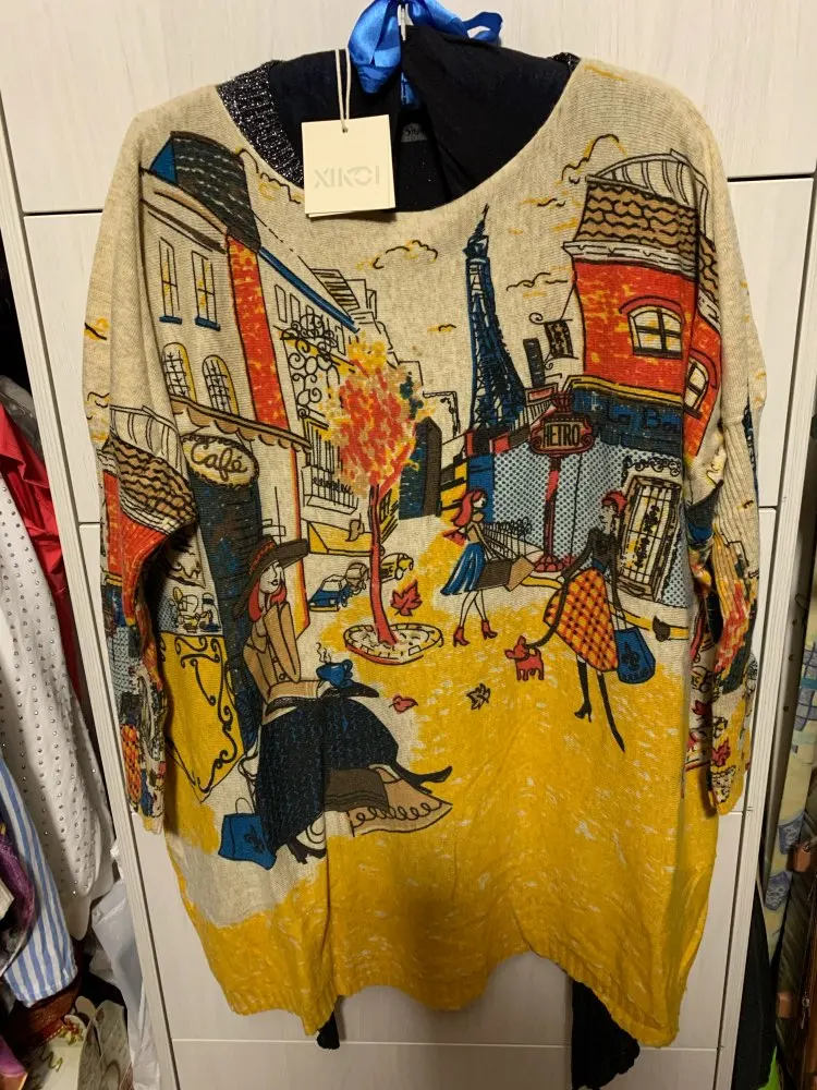 неплохой джемперок. но на мне уж кажется слишком оверсайз. длина до середины бедра. продавнц положил в подарок еще другой джемперок с розами - отдала маме
