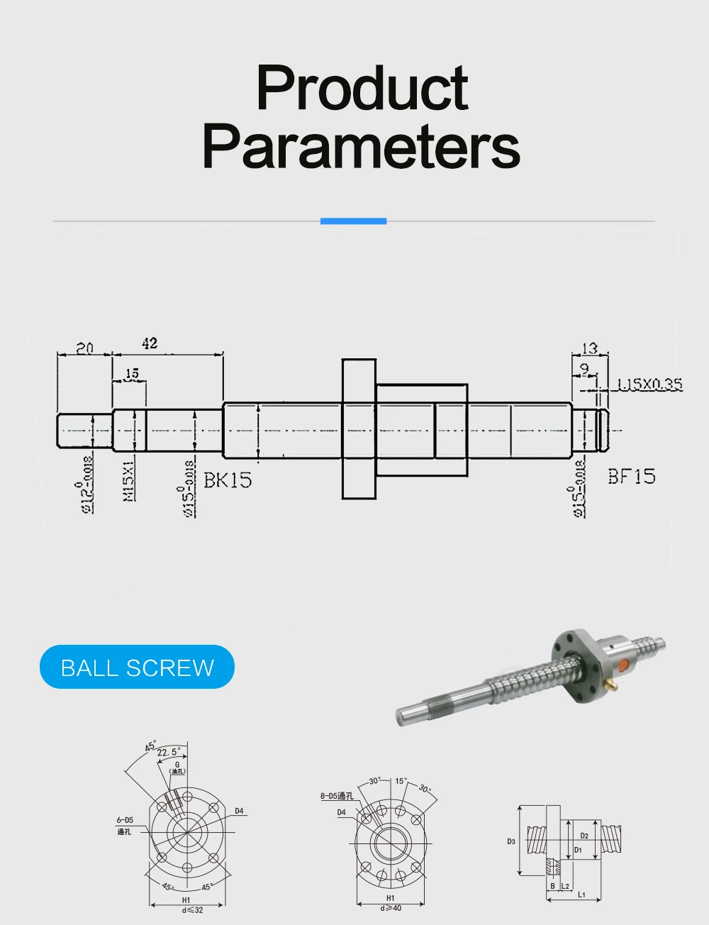 Шариковая гайка с ЧПУ 20 мм 2004 RM2010 SFU2005 Ballcrew 1500 мм до 1850 мм с концевой обработкой BKBF15 Ballnut 2005 для станка с ЧПУ