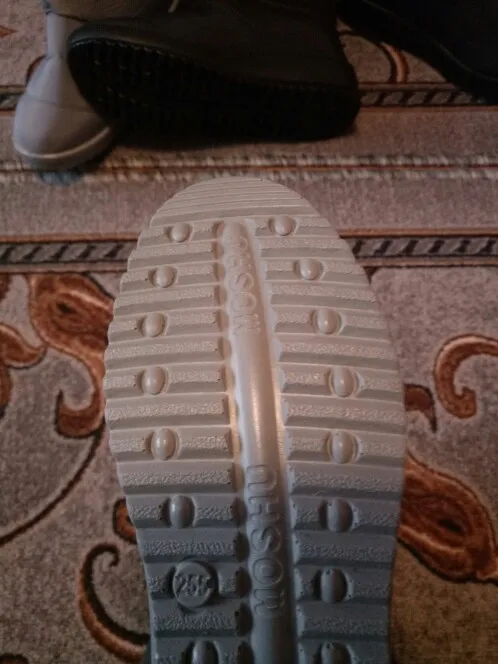 Из за большого размера сапоги смотрятся немного грубо, очень высокий подъем, для дачи и прогулок вполне устроит, ужасные стельки, такое ощущение, что они вообще не от этих сапог ,они по размеру больше и складываются гармошкой внутри.