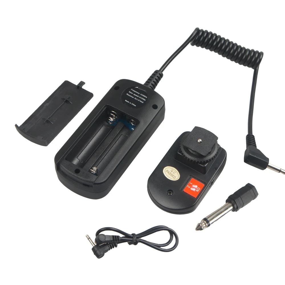 Триггер приемника принимает сухую батарею для источника питания, которая является безопасной, энергосберегающей и удобной. Продукт принимает микрокомпьютер для управления декодированием, который имеет превосходную способность анти-помех; Чувствительная скорость реакции, самая высокая Синхронная скорость может достигать 1/250 сек.