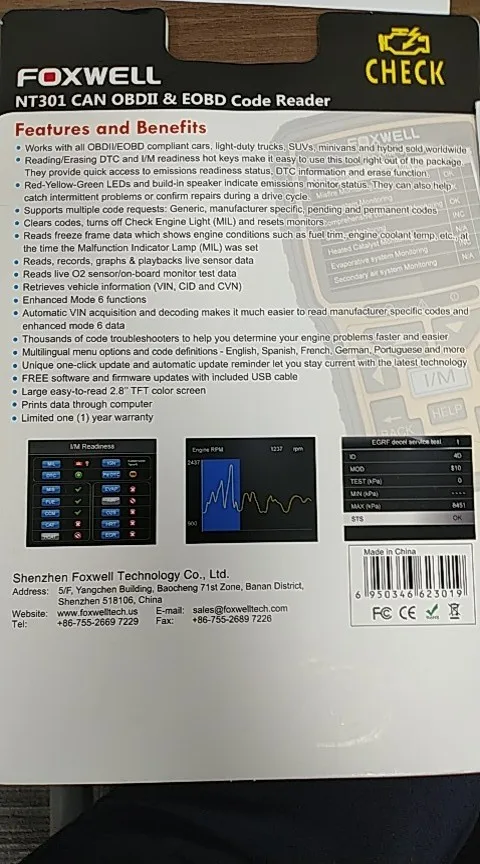 Страна: US Color: FOXWELL NT301 Ships From: China Доставка: Standard Shipping 16.03.2021