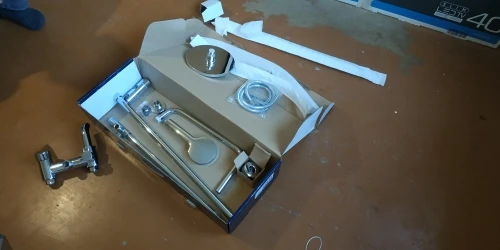 Доставка сдэк до двери 8 дней в Брянск, хорошо упаковано, не порвано, все на месте, без брака. Подошёл практически идеально, заменили на более тонкие только круглые накладки между стеной и трубами. Пользуемся 2 месяца без нареканий, не гудит, отличный напор