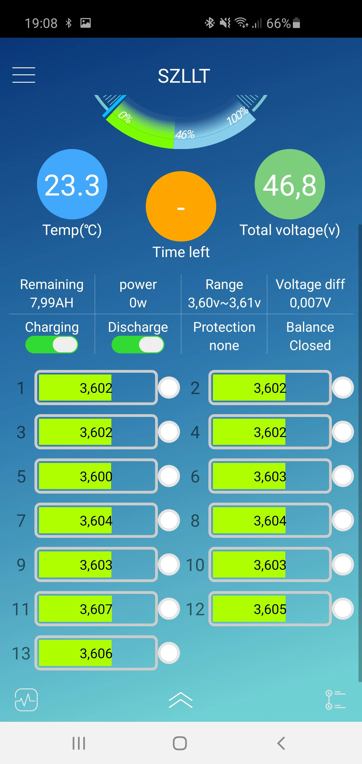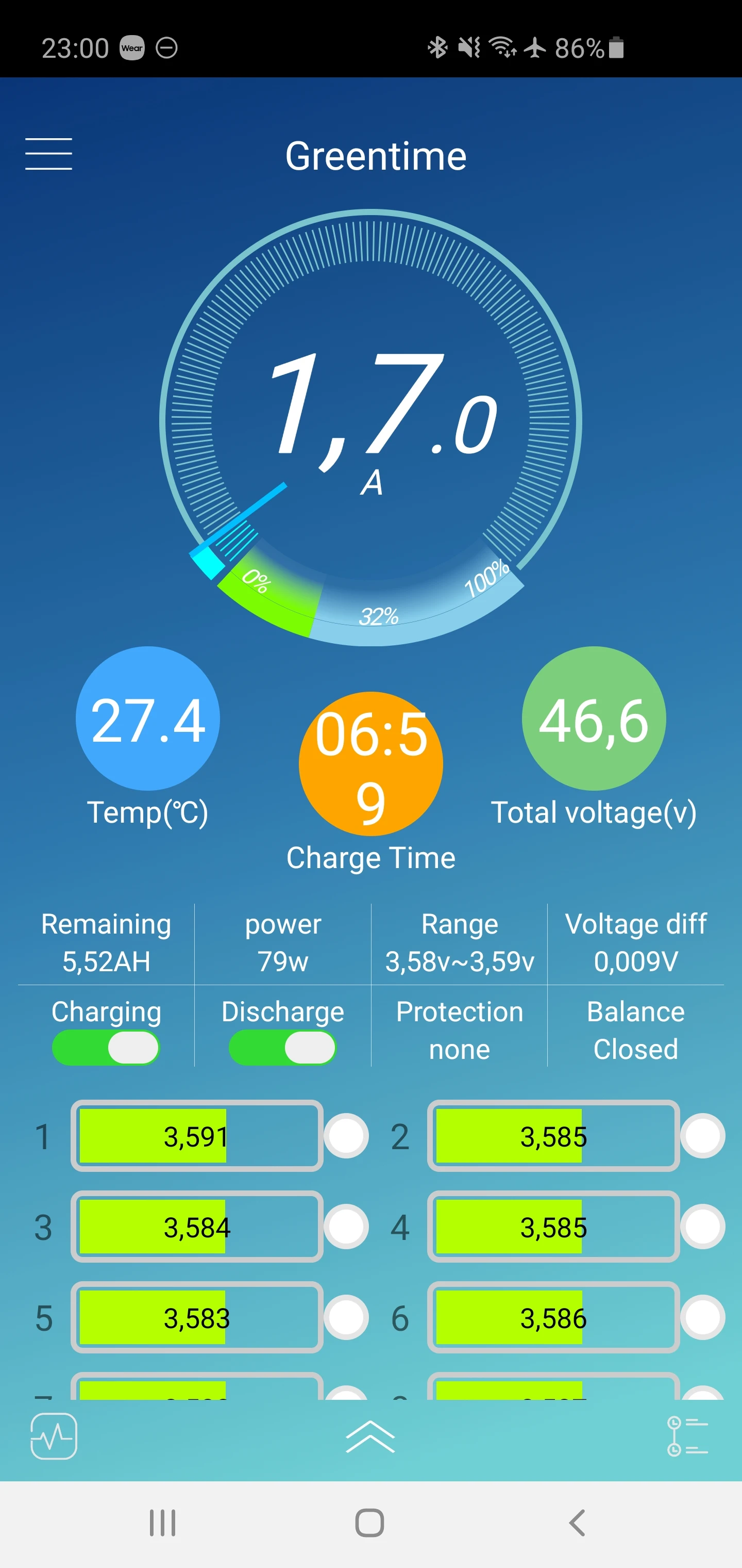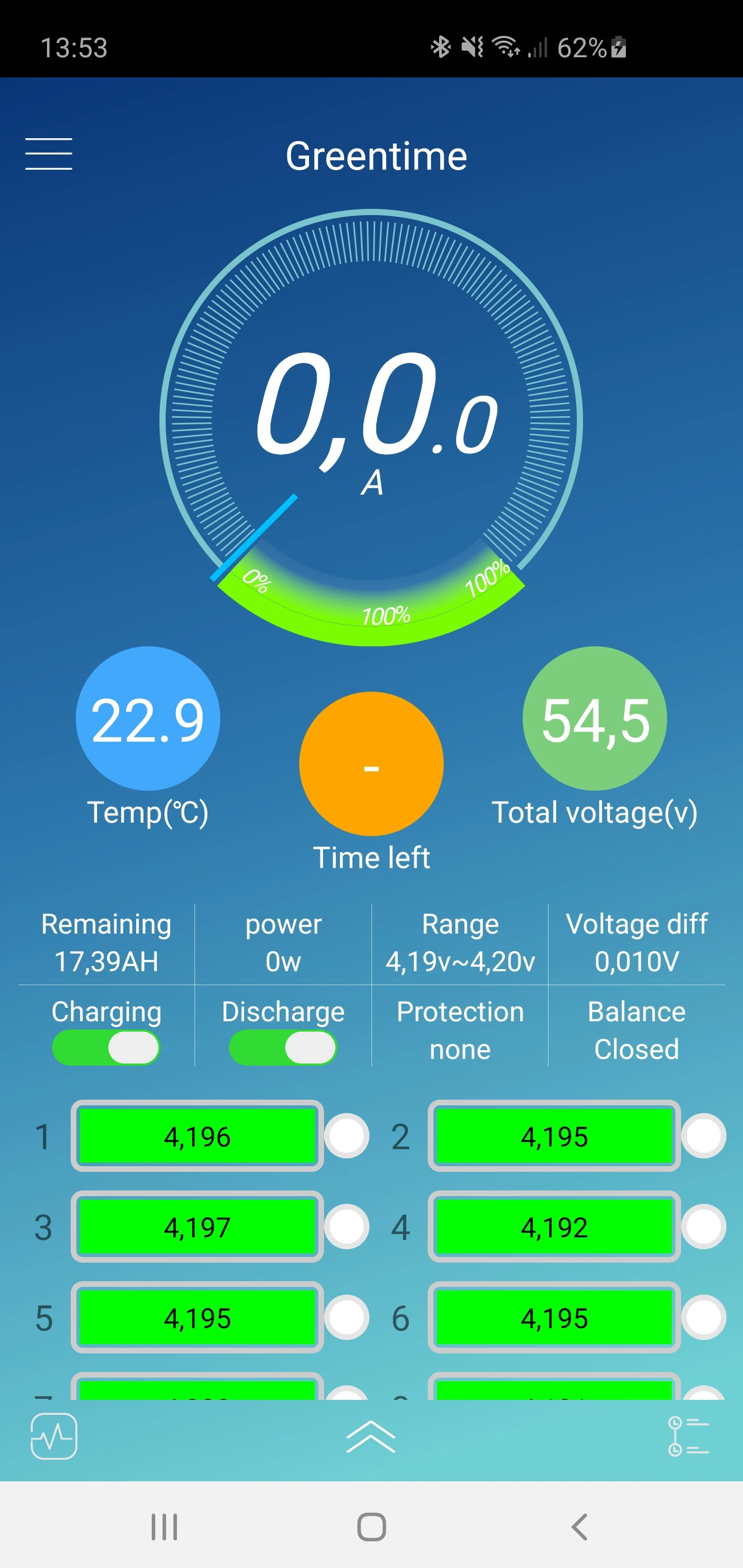 Заказывал у этого продавца две bms платы таких же параметров. Одна работает надежно и без проблем. Вторая оказалась бракованная, что выявилось лишь в процессе эксплуатации спустя полгода с момента покупки. Сейчас взял третью. Качество упаковки среднее. Плата не защищает от повышенного напряжения и не защищает от перезаряда. Защита от перезаряда может сработать а может и нет. Рекомендую заряжать батарею под бдительным присмотром, а не надеяться на полную автономность балансировочных резисторов. Оформление приложения приятное. Bluetooth -modul работает хорошо. Просьба к изготовителю запустить в производство bms 48v 100A и 48v 120A