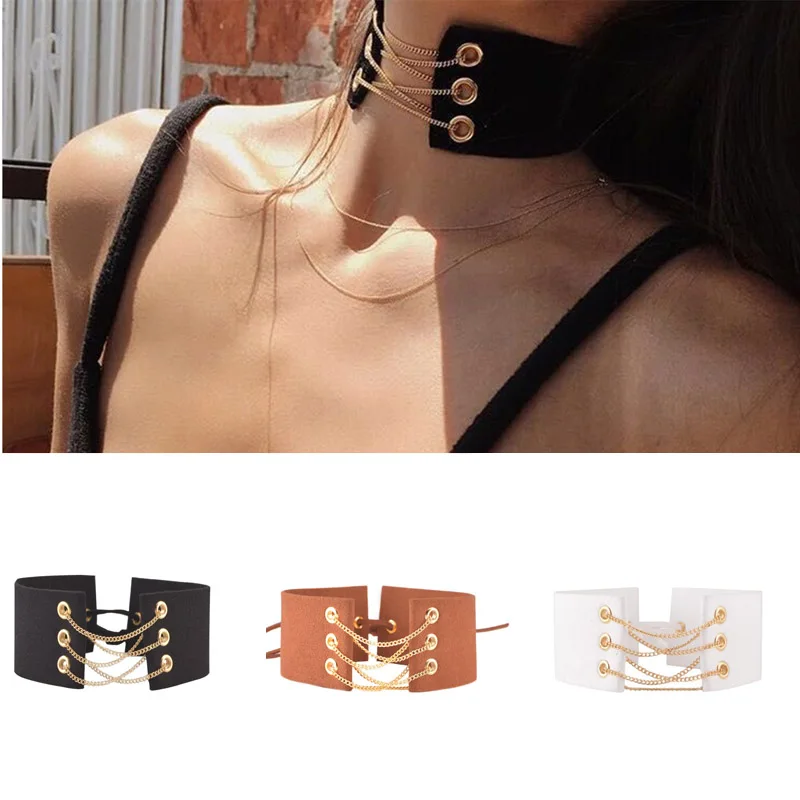 Горячая новинка модные аксессуары бархатное колье ожерелье ширина и золотая цепочка галстук для пары влюбленных N206