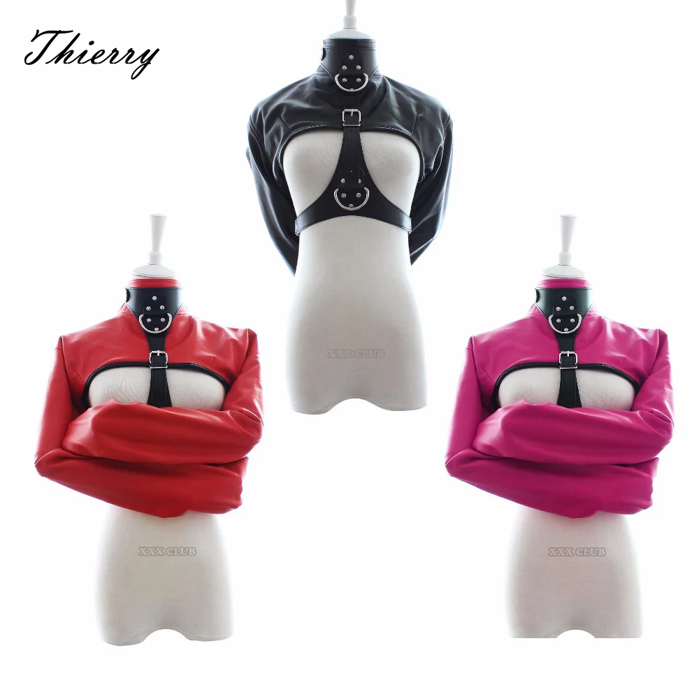Тьерри взрослые секс-игры Фетиш страйткуртка бондаж удерживающая куртка с длинными рукавами грудь открытые топы интимные игрушки для женщин