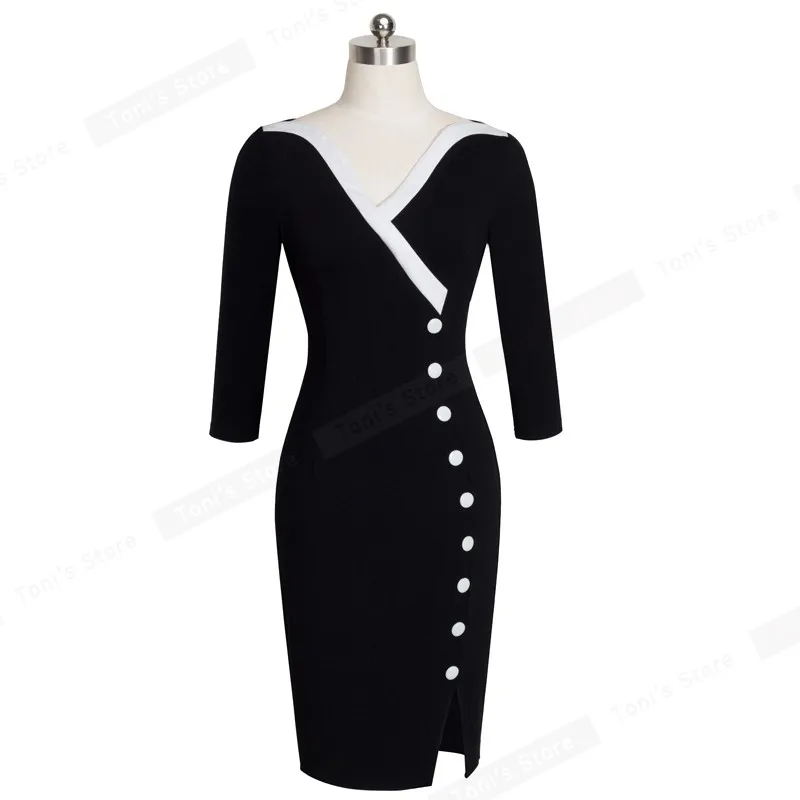 Женское офисное платье Nice-forever, элегантное облегающее платье с V-образным вырезом, пуговицами и рукавом 34, модель B335, 2019