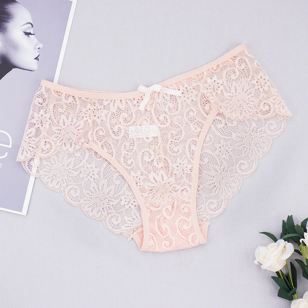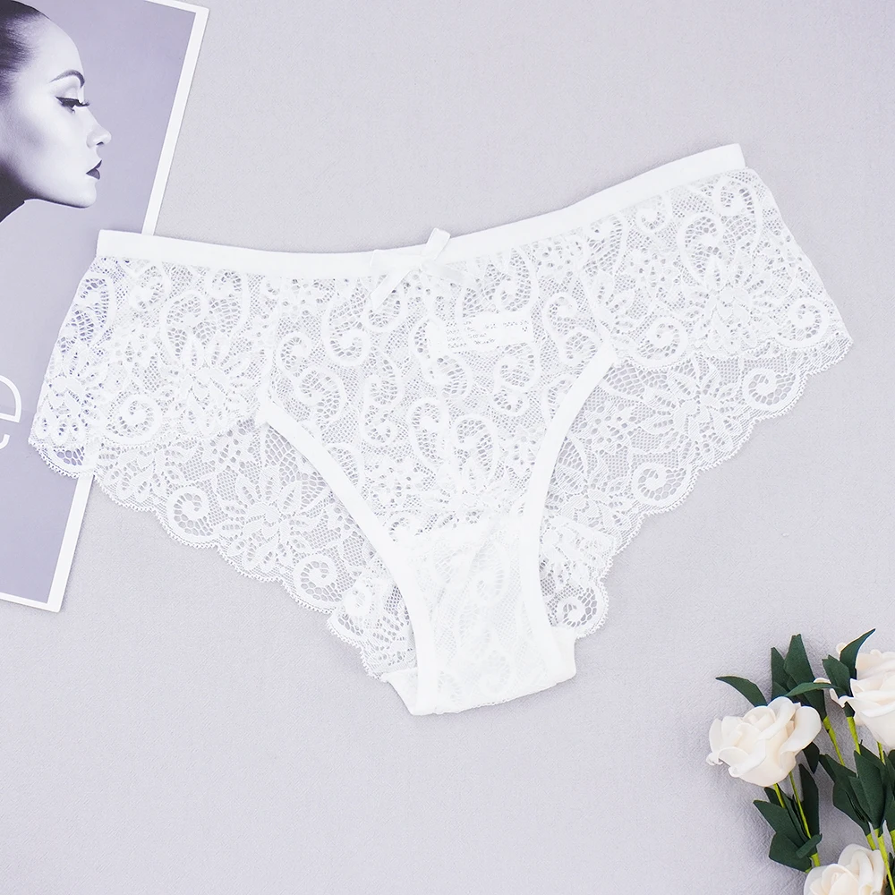 Трусы женские кружевные, прозрачные, с бантиком, размера плюс, S-XL