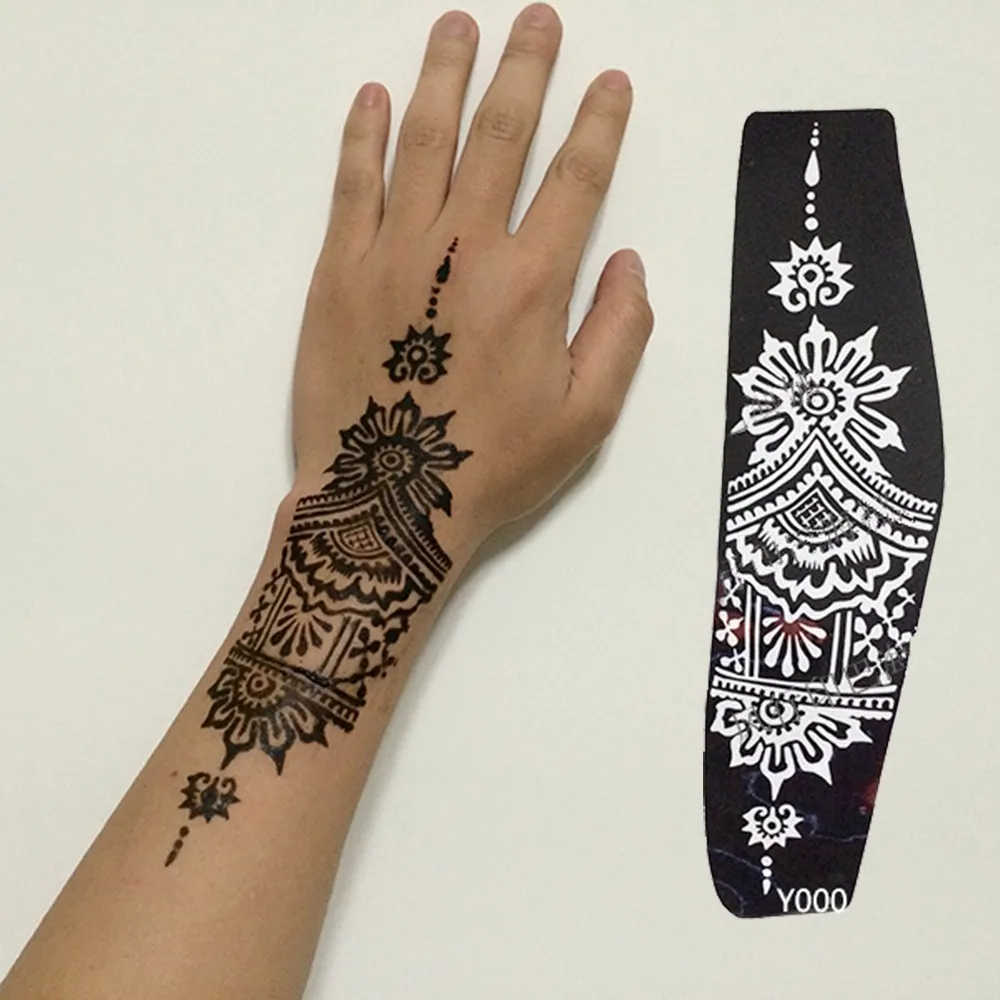 1 пара трафаретов для татуировок хной водостойкий цветочный узор дизайн руки Менди для красоты женщина боди-арт Татуировка трафарет S123