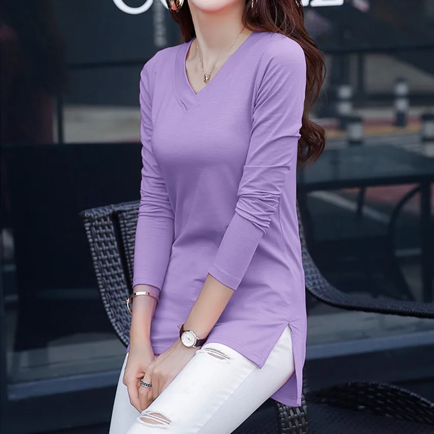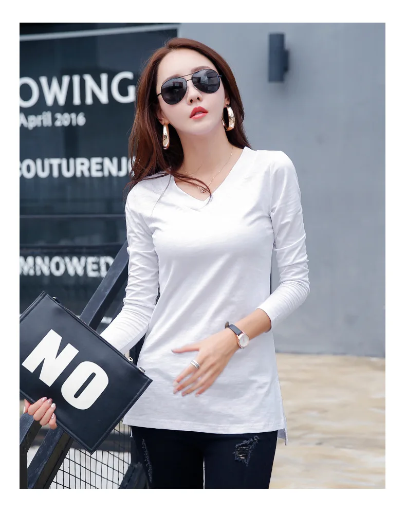 Осенне-зимняя женская футболка с длинным рукавом из хлопка