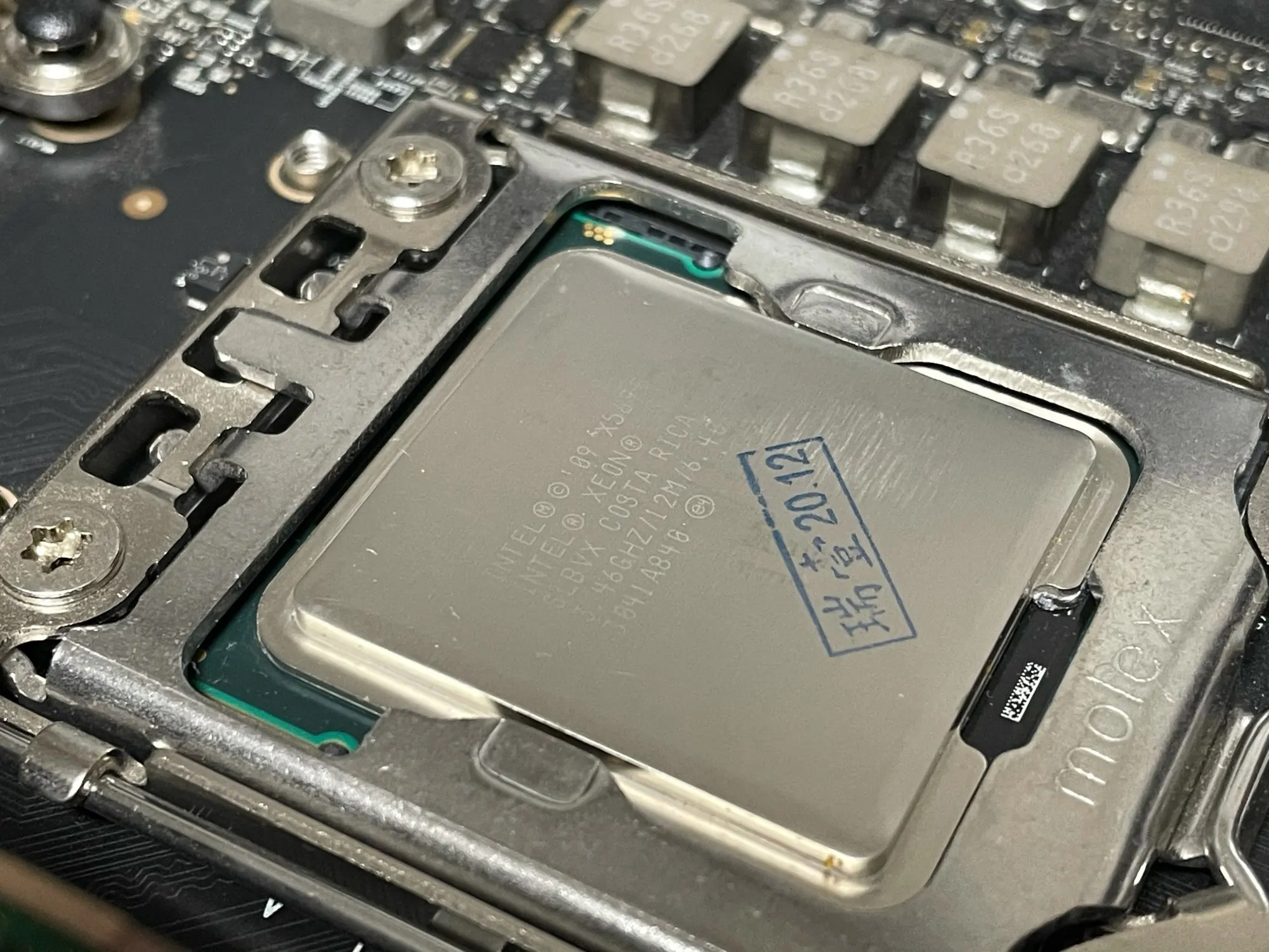 Xeon X5690, как описано, поставляется в защитном мешке. Разумная очистка поверхности, минимальный остаток на верхней части процессора при протирании спиртом. В настоящее время работает очень хорошо, надежно, на Mac Pro 2009.