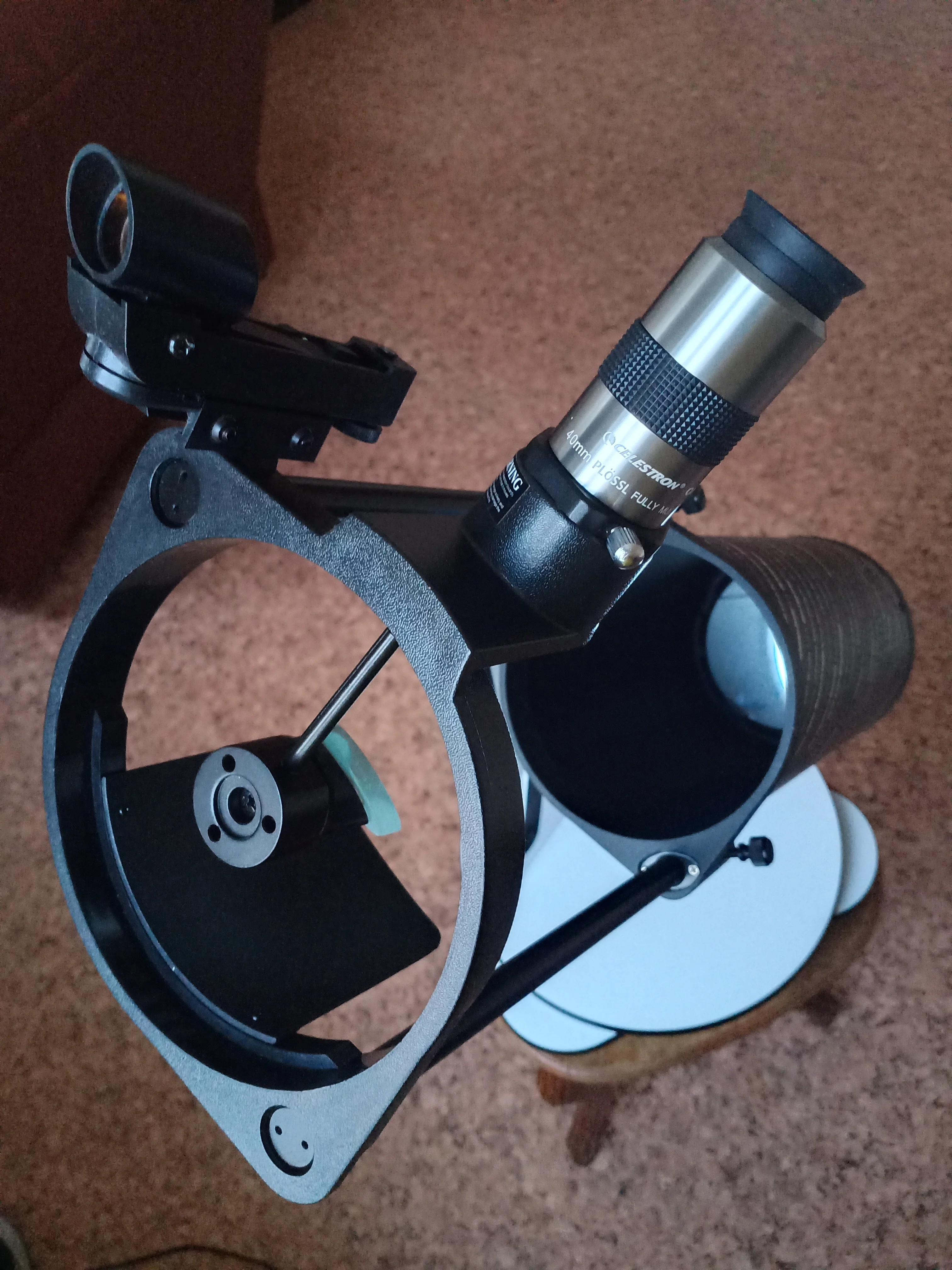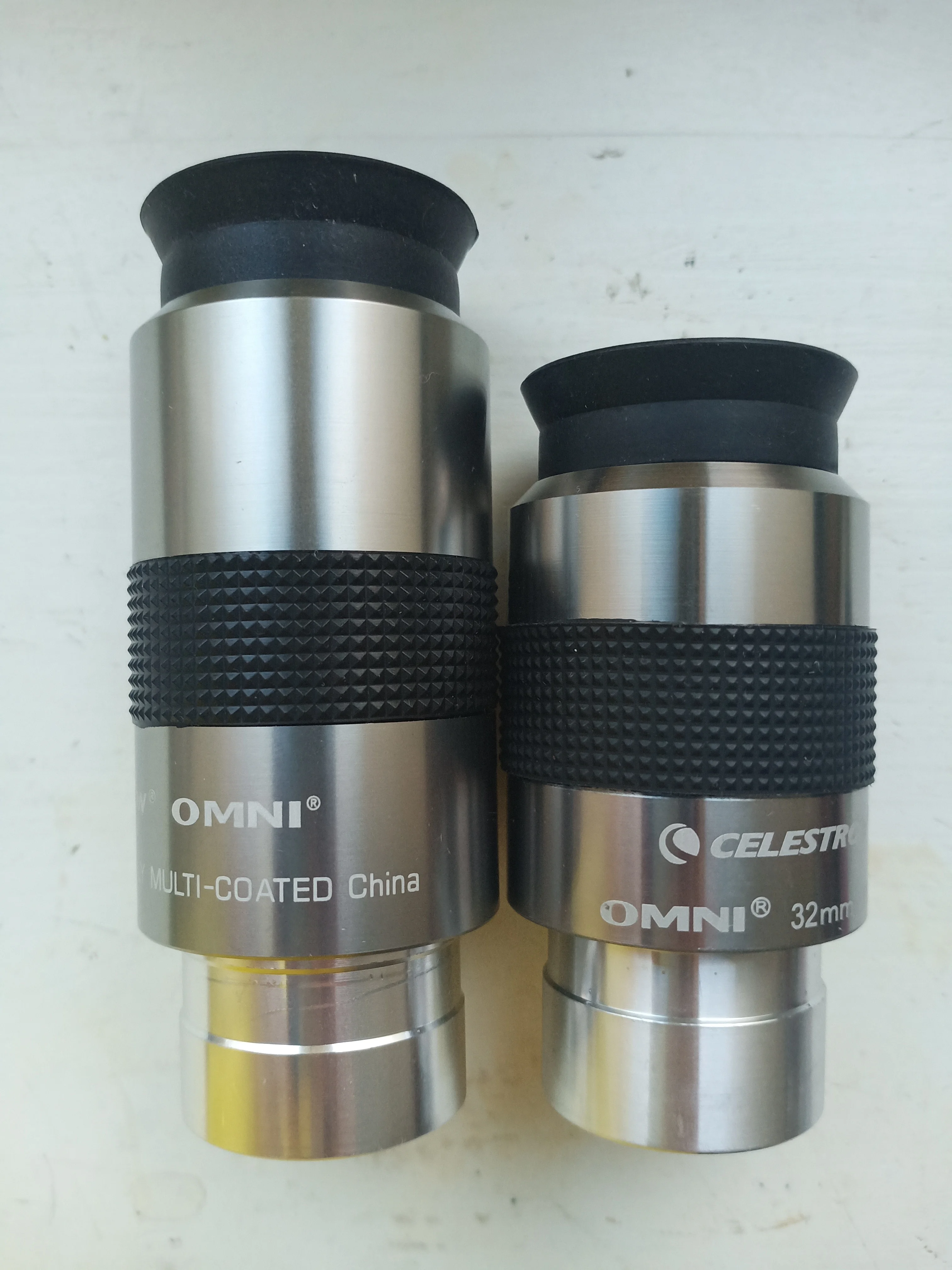 Окуляр 40 мм имеет поле обзора 43 градусов. Окуляр диаметром 32 мм имеет поле обзора 50 градусов. Изображение почти идентично, возможно, немного светлее в окуляре 40 мм. Окуляр диаметром 40 мм значительно тяжелее и длиннее (а с линзой Барлоу кажется даже слишком длинным). Стеклянные линзы. В общем, окуляры этой серии довольно хорошего качества по своей цене.