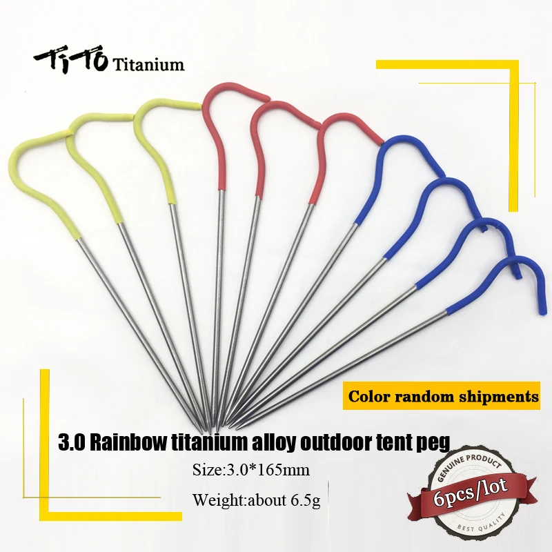 TiTo из титана для палатки колышек 6 шт.10 шт. для кемпинга на открытом воздухе Радуга из титана для палатки колышек для ногтей 3,0*165 мм из титана для палатки колышек для палатки
