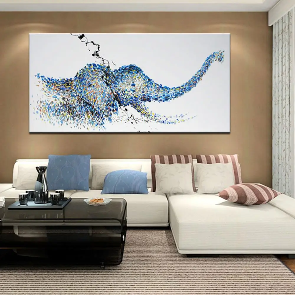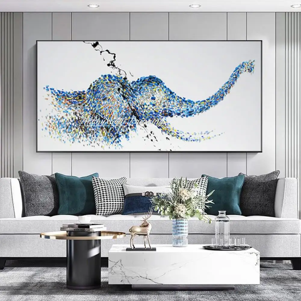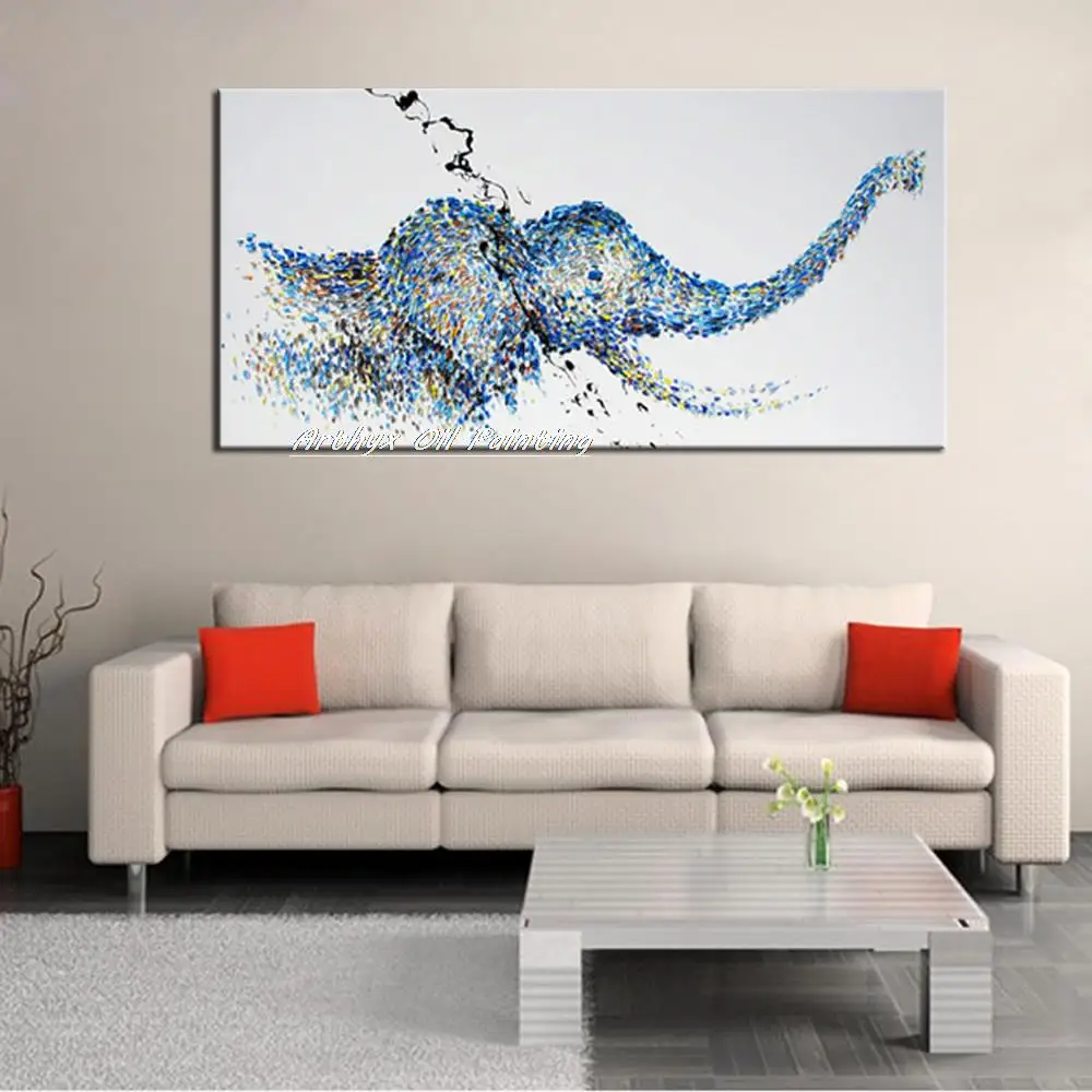 Ручная роспись ручной работы, современный абстрактный слон, животное, картины маслом на холсте, Настенная картина для гостиной, украшение дома