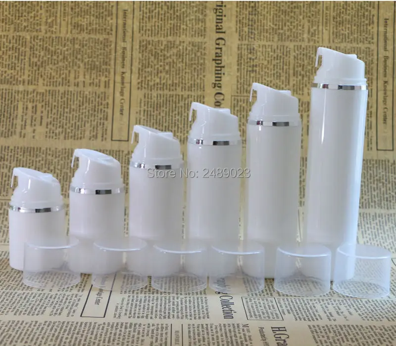 Прозрачные белые пластиковые безвоздушные бутылки с серебряной линией, 50 мл, пустые косметические контейнеры, Упаковочный Инструмент, 10 шт.лот