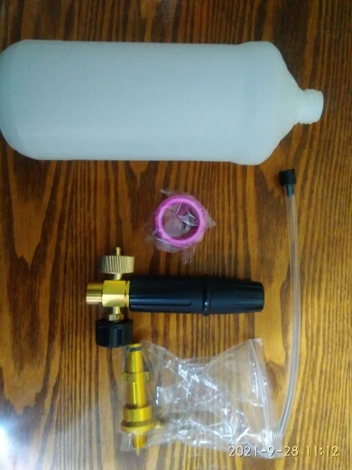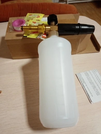 товар пришел быстро за4 дня. Качество конечно не из лучших,во первых: не положили уплотнитель для пробки,во вторых; латунная там только середина где кран,а остальное алюминий.Ну и в третьих; качество пены так себе,больше похоже на пенную эмульсию.Пена должна ложиться и не спадать чтобы работать,а она стекает.Конечно товар поэтому и дешёвый,т.к.не качественный!