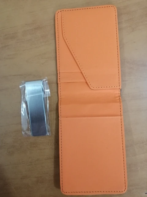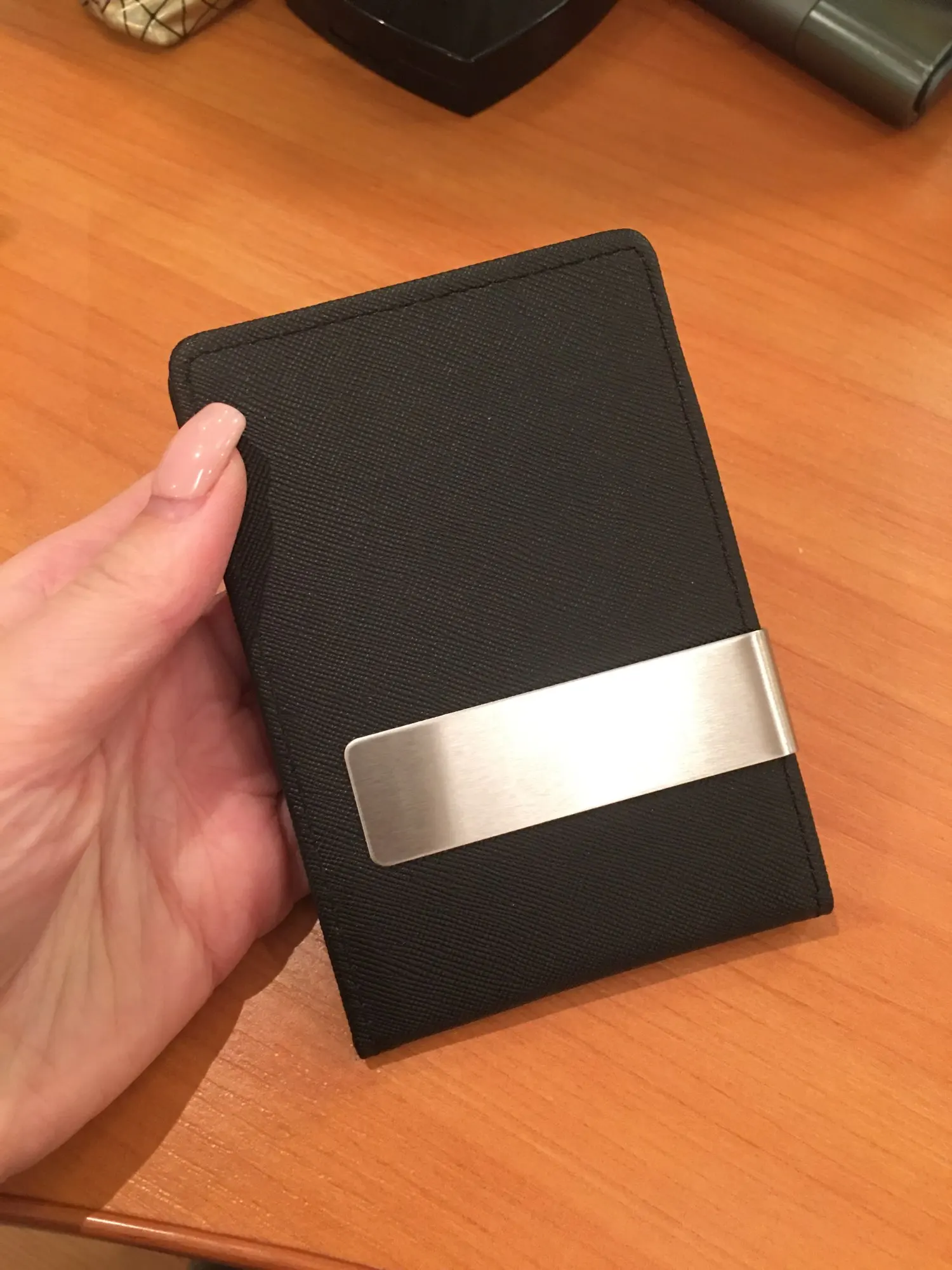 Сам товар за эти деньги понравился. Но описание и реальность расходятся. Внешний материал ткань, а не как не искусственная кожа. Клипса съёмная но без гравировки как на изображении.